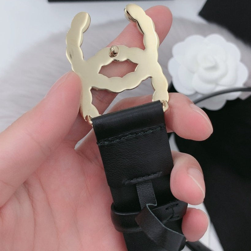 CC WOMEN'S BELT 3.0CM LEATHER BLACK BUCKLE GOLD DIAMOND