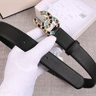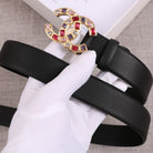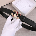 CC WOMEN'S BELT BUCKLE GOLD BLACK LEATHER 3.0CM