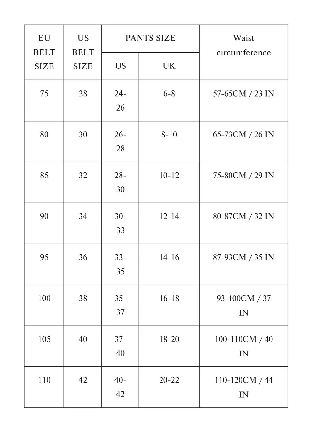 EU Size Belt: 75,80,85,90,95,100,105,110