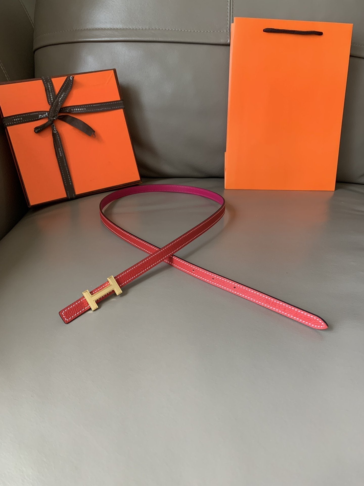 FOCUS BELT GOLD BUCKLE RED AND PINK REVERSIBLE LEATHER 1.3CM