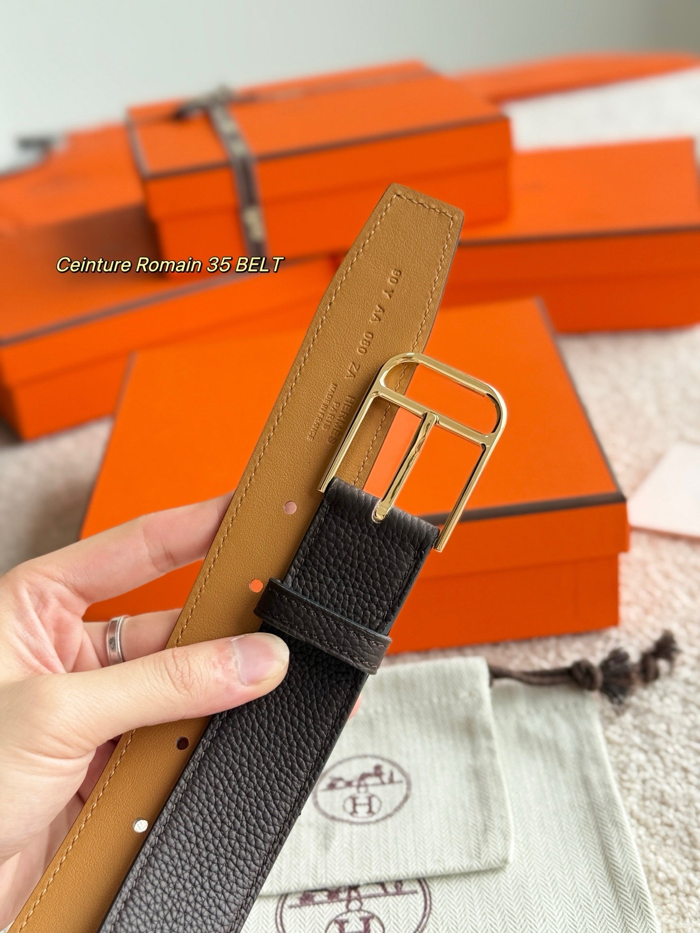 HM Gold 35mm Romain Belt Brown Chocolate Leather 188392