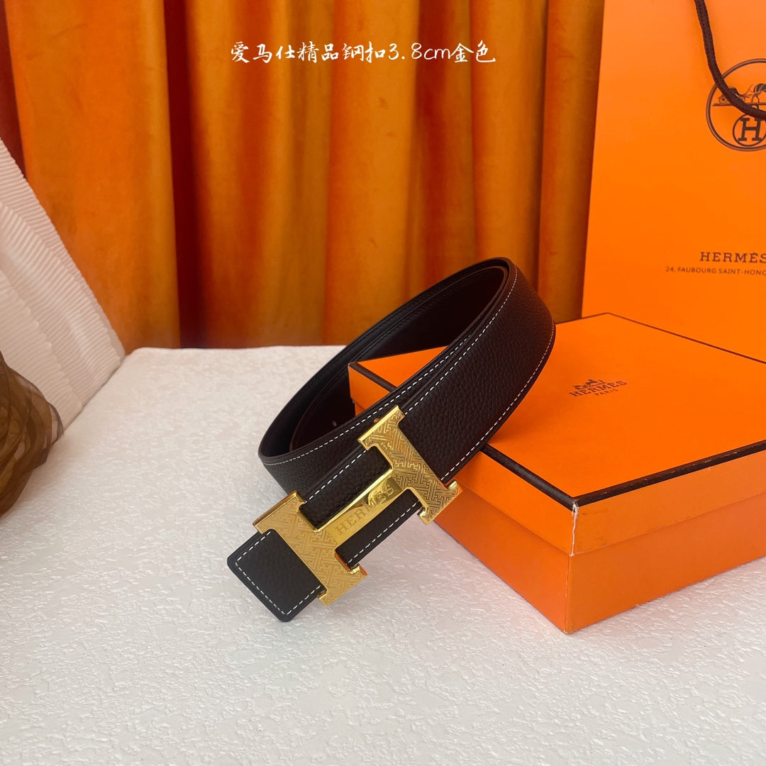 HM Gold Buckle H Belt 38mm Black Brown Calfskin 187185