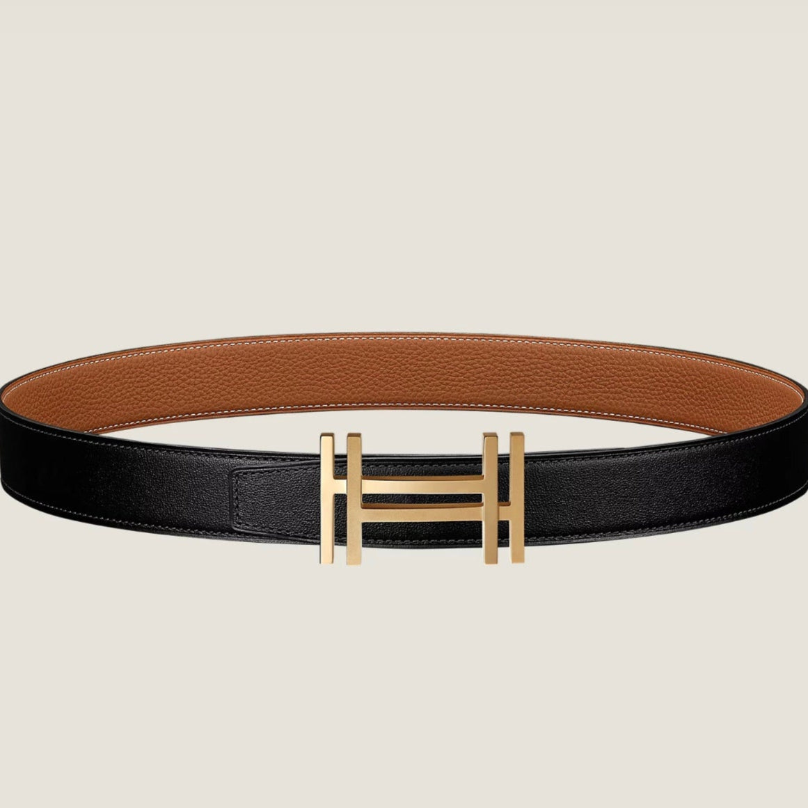 HM H au Carre Buckle Belt 32mm Black Brown Leather 187767