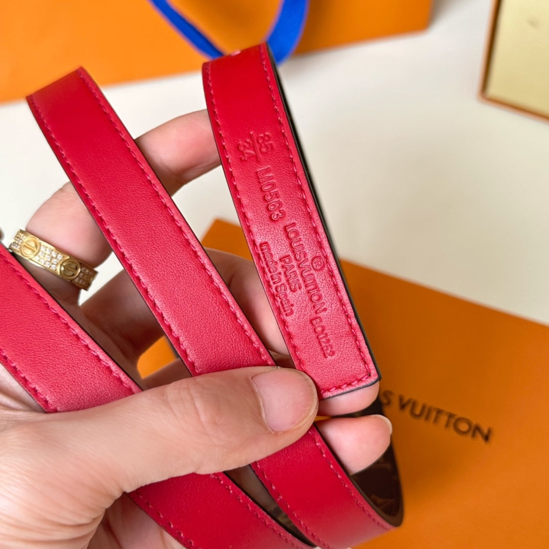 LV Circle Nautical 20mm Reversible Belt Gold Buckle Red Brown Lambskin