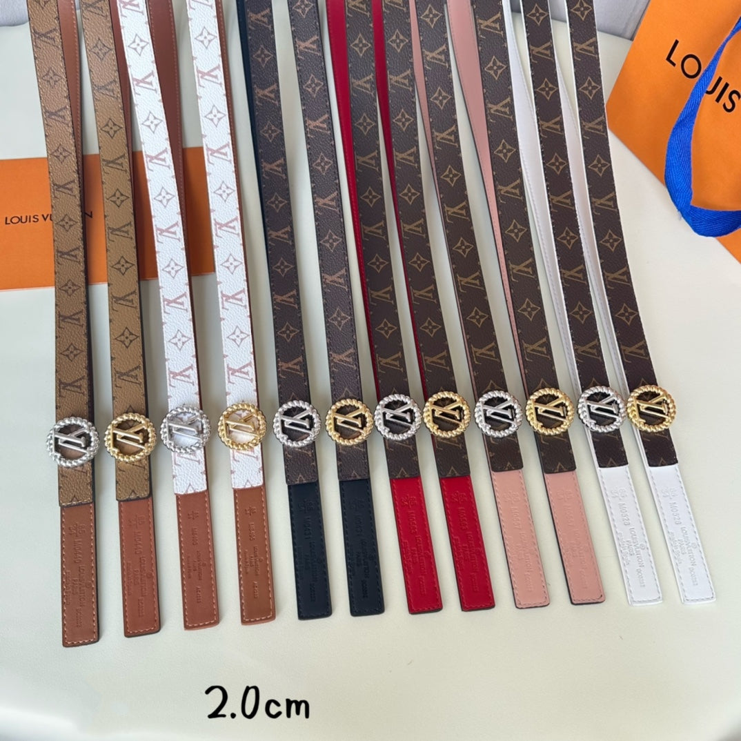 LV Circle Nautical 20mm Reversible Belt Silver Buckle Pink Brown Lambskin