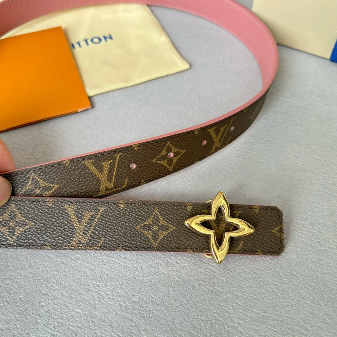 LV Flowergram 30mm Reversible Belt Gold Buckle Pink Brown Leather