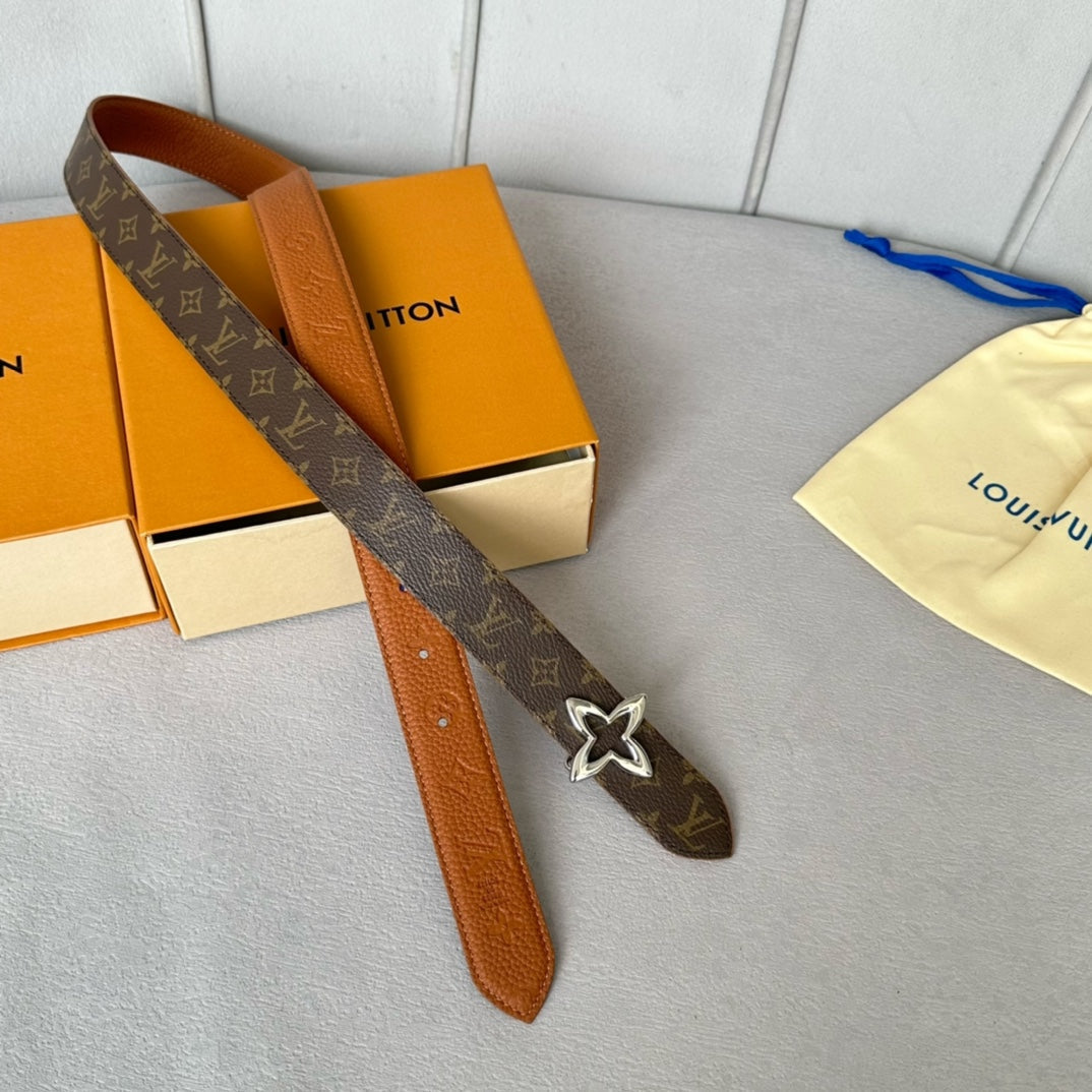 LV MINI FLOWERGRAM 30MM REVERSIBLE BELT IN BRONZE BROWN EMBOSSED CALFSKIN SILVER HARDWARE
