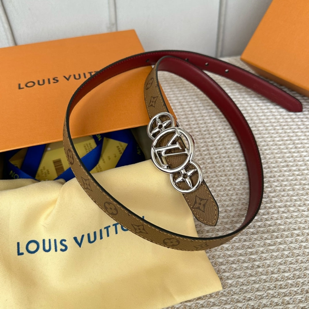 LV S-LOCK BELT 20 MM BROWN MONOGRAM AND AUBURN RED CALFSKIN SILVER HARDWARE