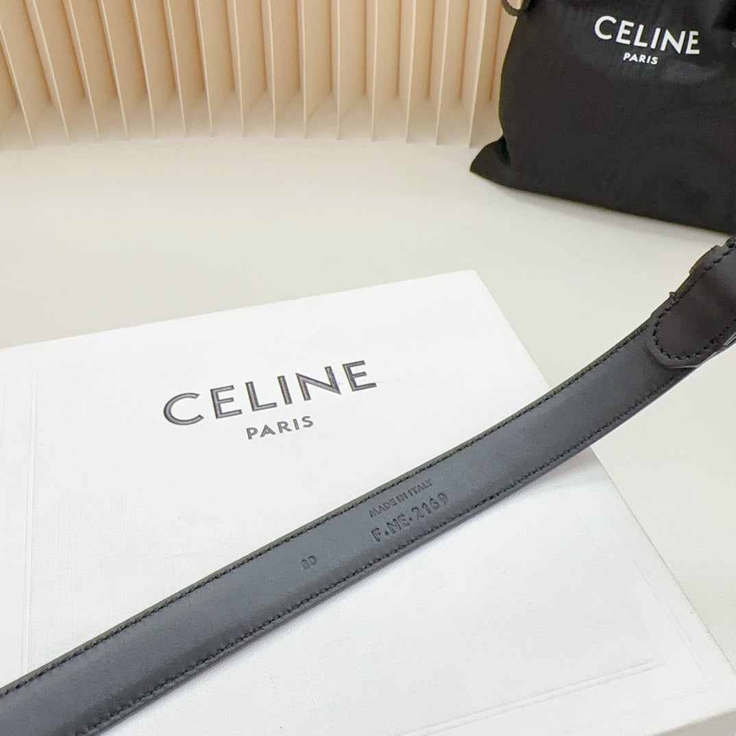 Triomphe Belt 18mm Black Calfskin Gold Buckle Logo Motif Attached