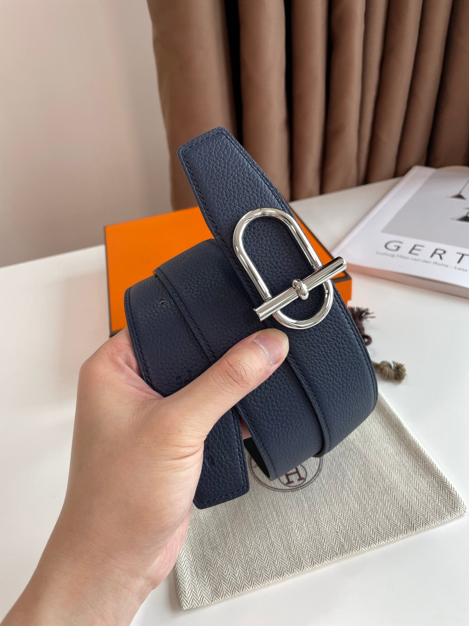 TUBE H BELT SILVER BUCKLE & REVERSIBLE NAVY BLUE LEATHER STRAP 38MM