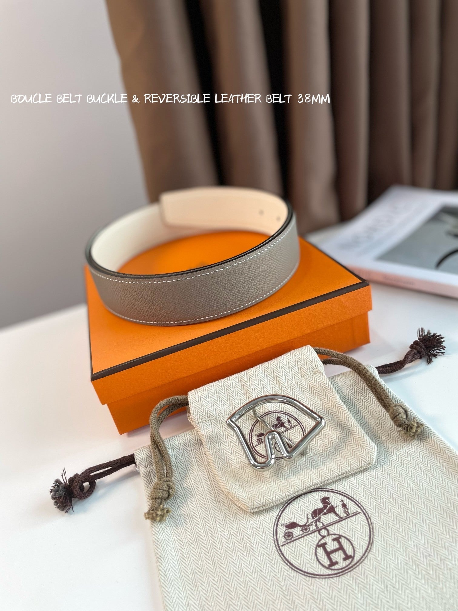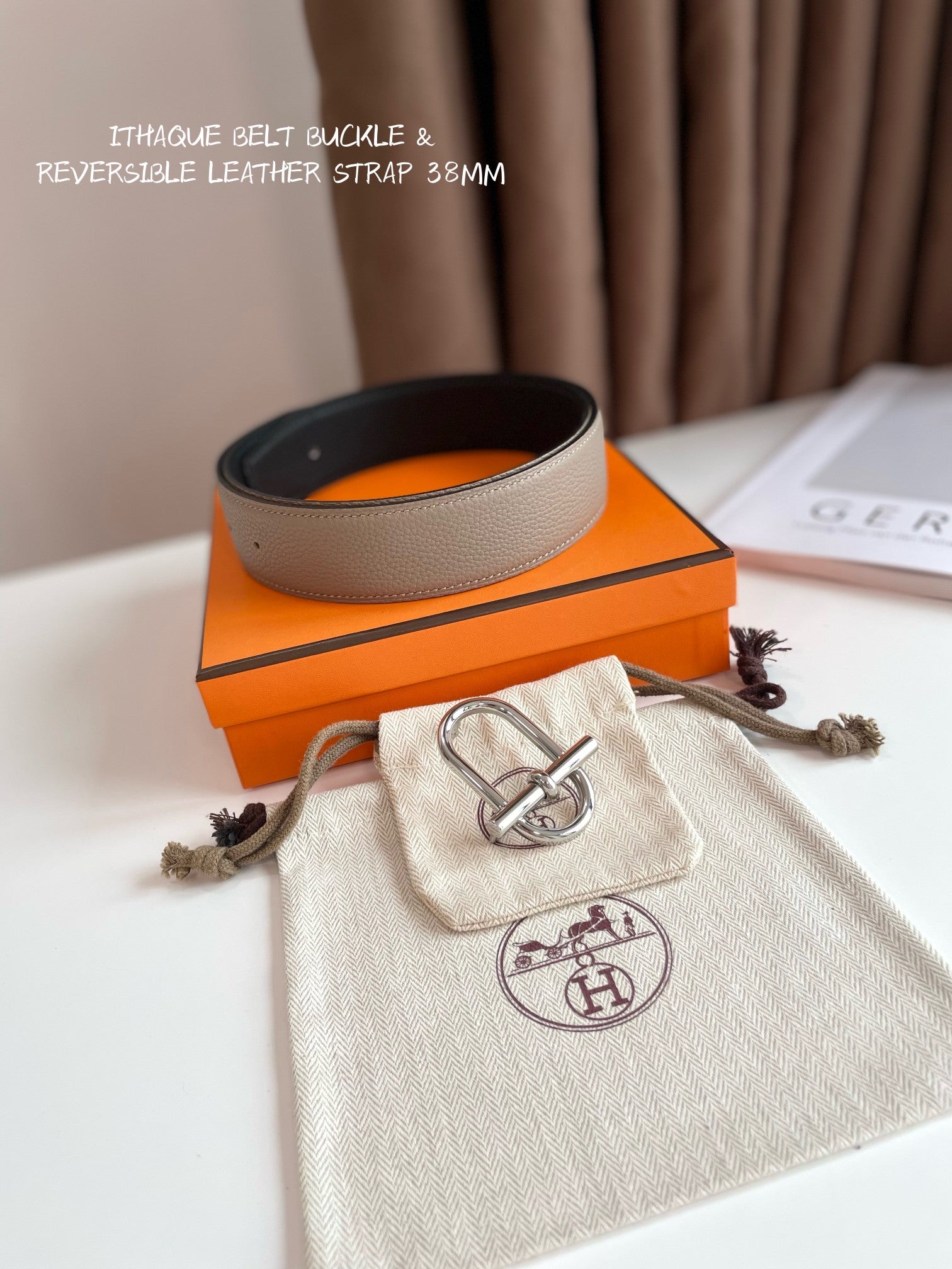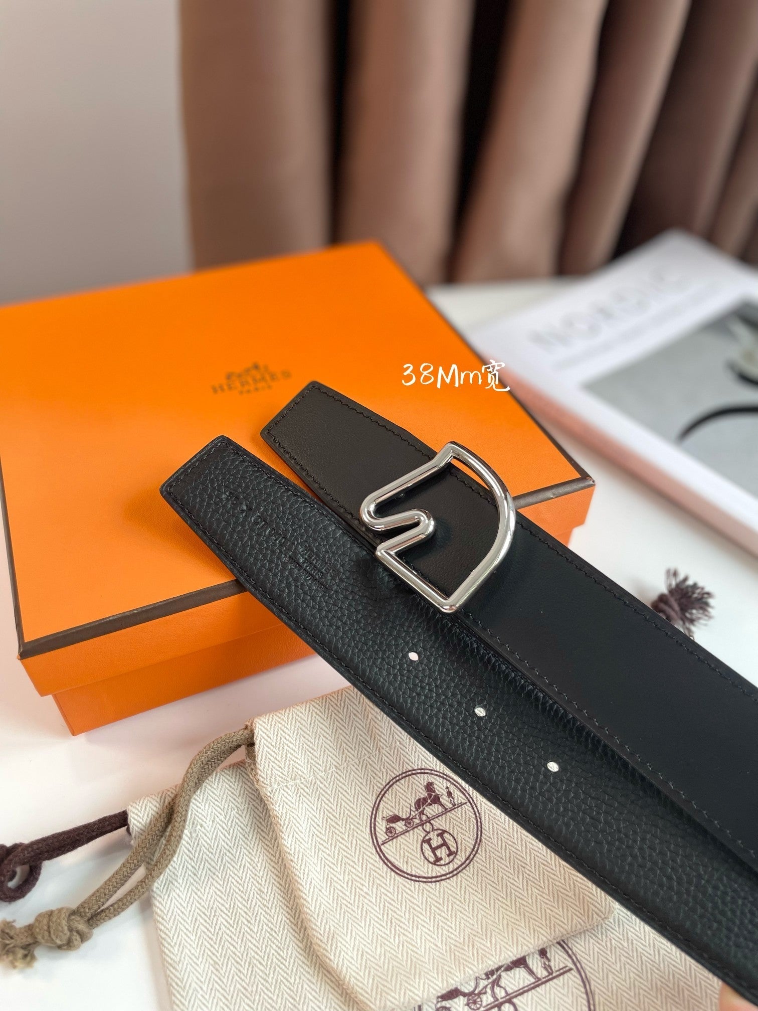 HM ITHAQUE BELT SILVER BUCKLE & REVERSIBLE CINNAMON BROWN AND BLACK LEATHER STRAP 38MM