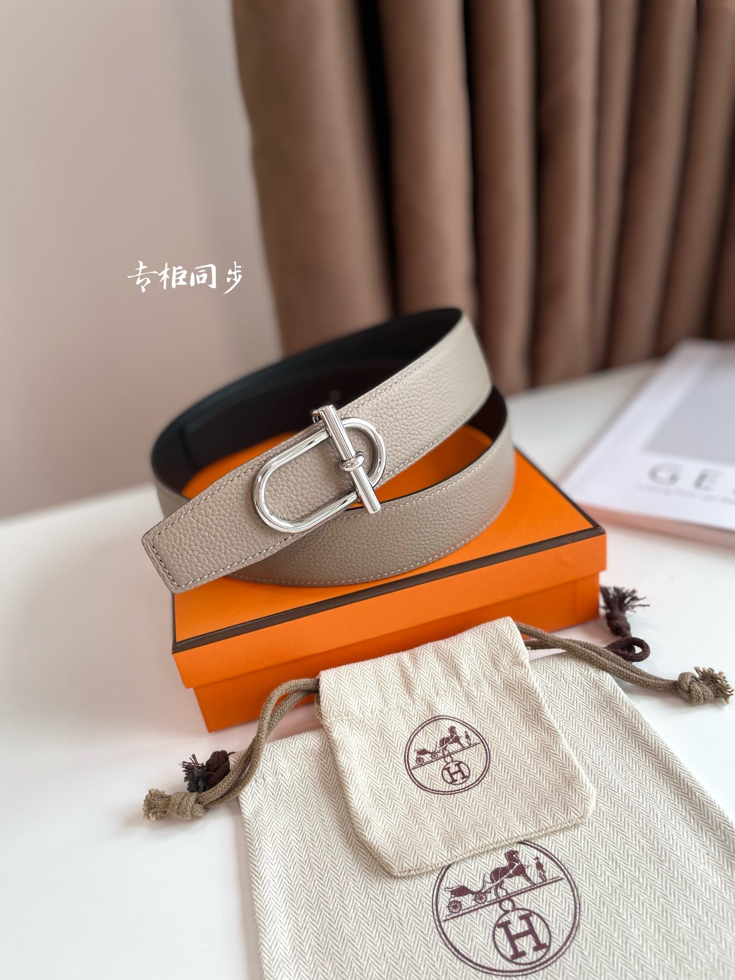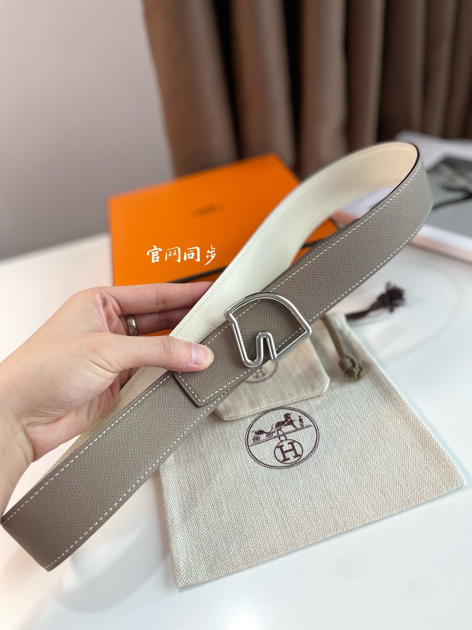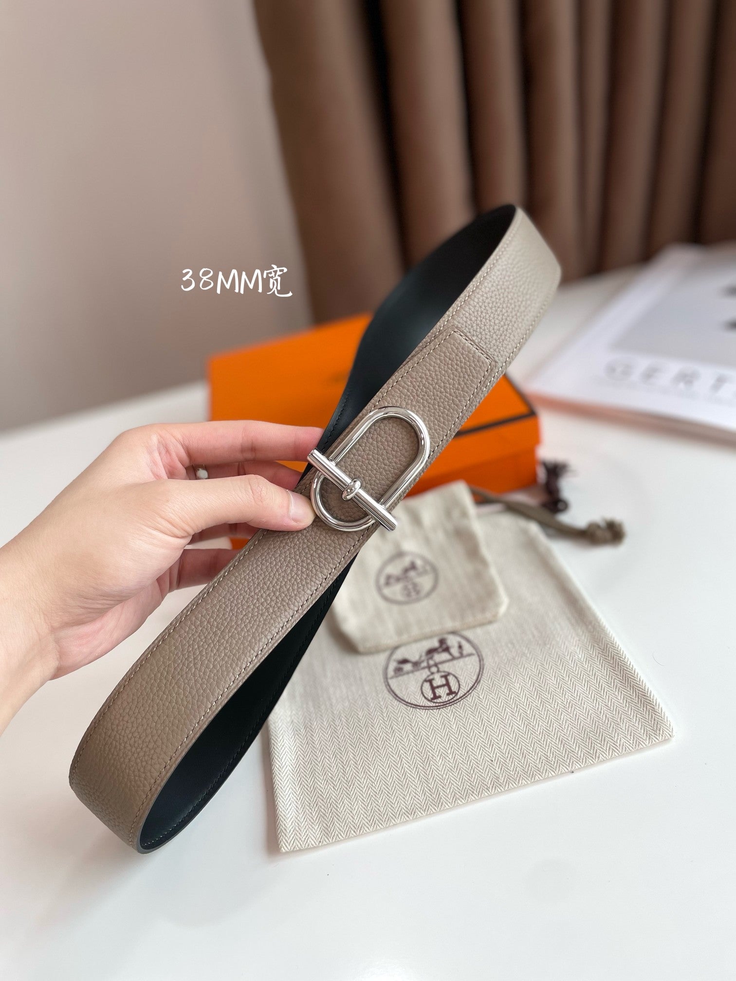 HM ITHAQUE BELT SILVER BUCKLE & REVERSIBLE CINNAMON BROWN AND BLACK LEATHER STRAP 38MM