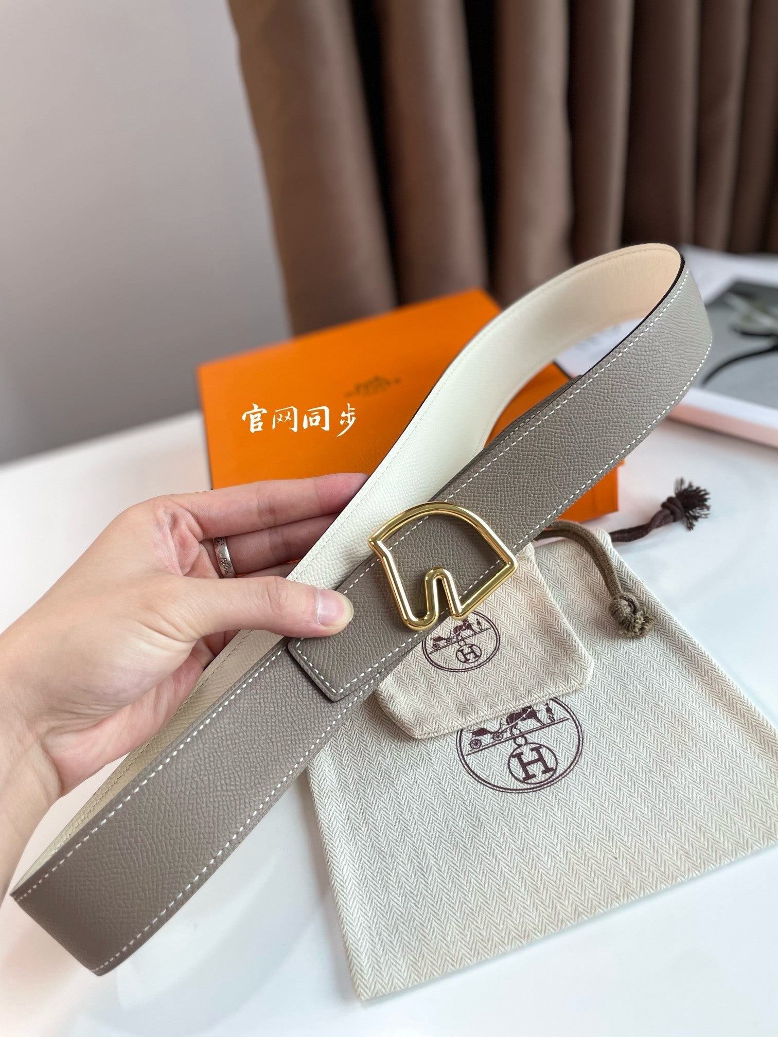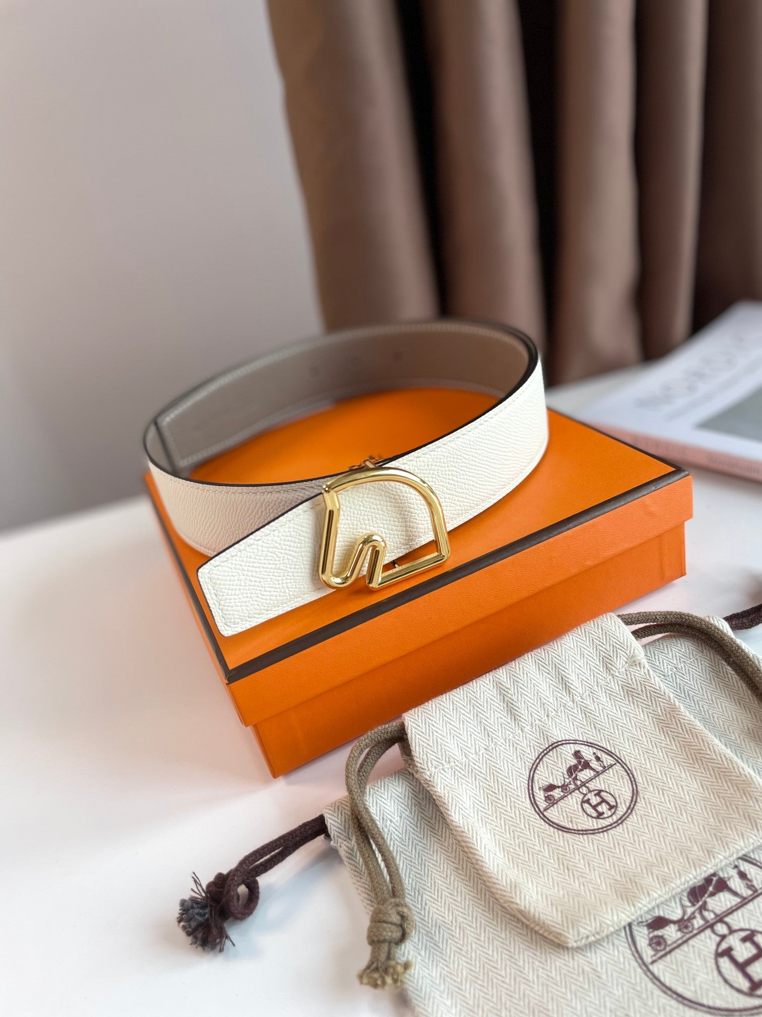 HM KELLY POCKET 18MM BELT WHITE LEATHER GOLD HARDWARE