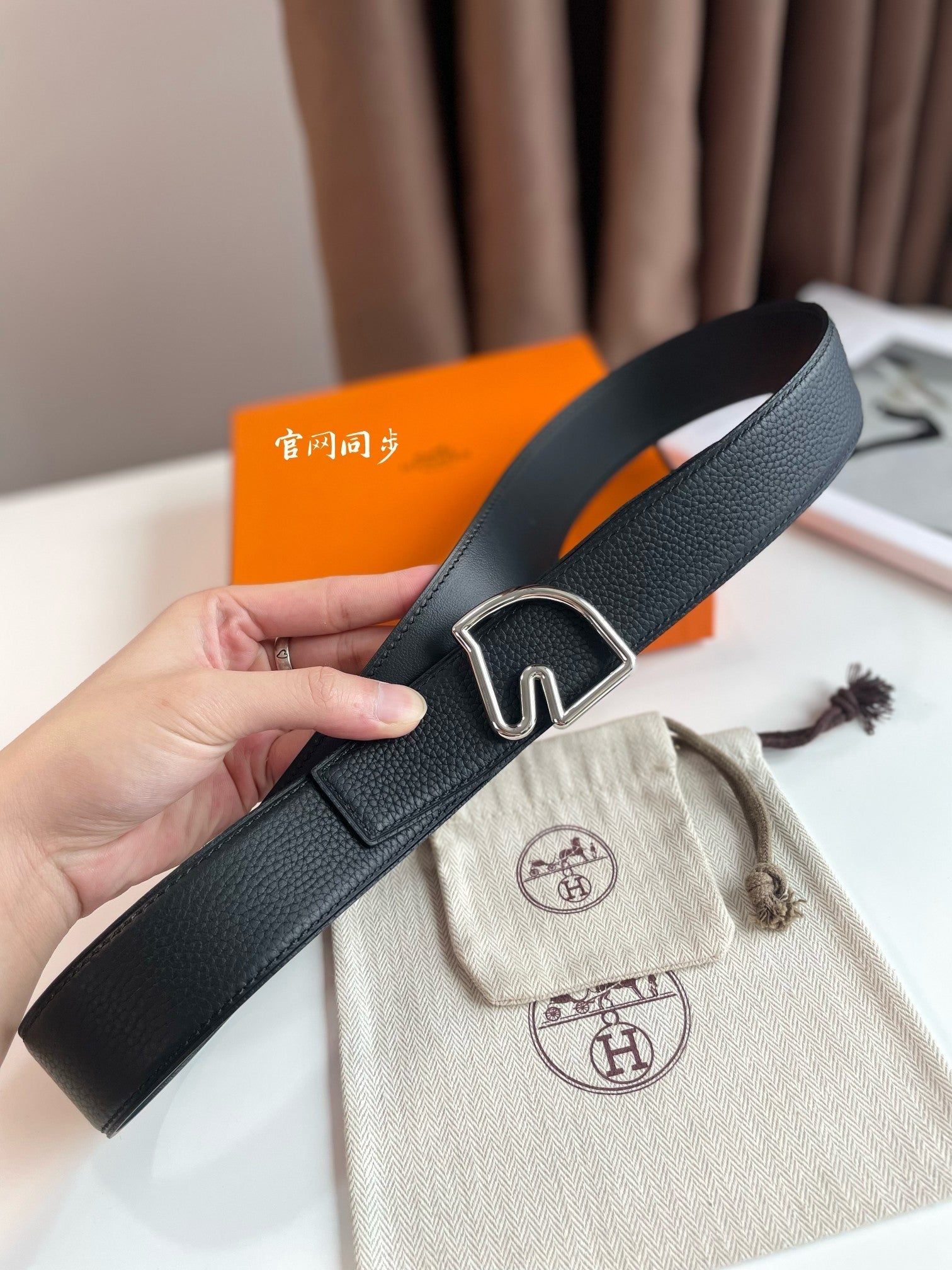 TUBE H BELT SILVER BUCKLE & REVERSIBLE BLACK LEATHER STRAP 38MM