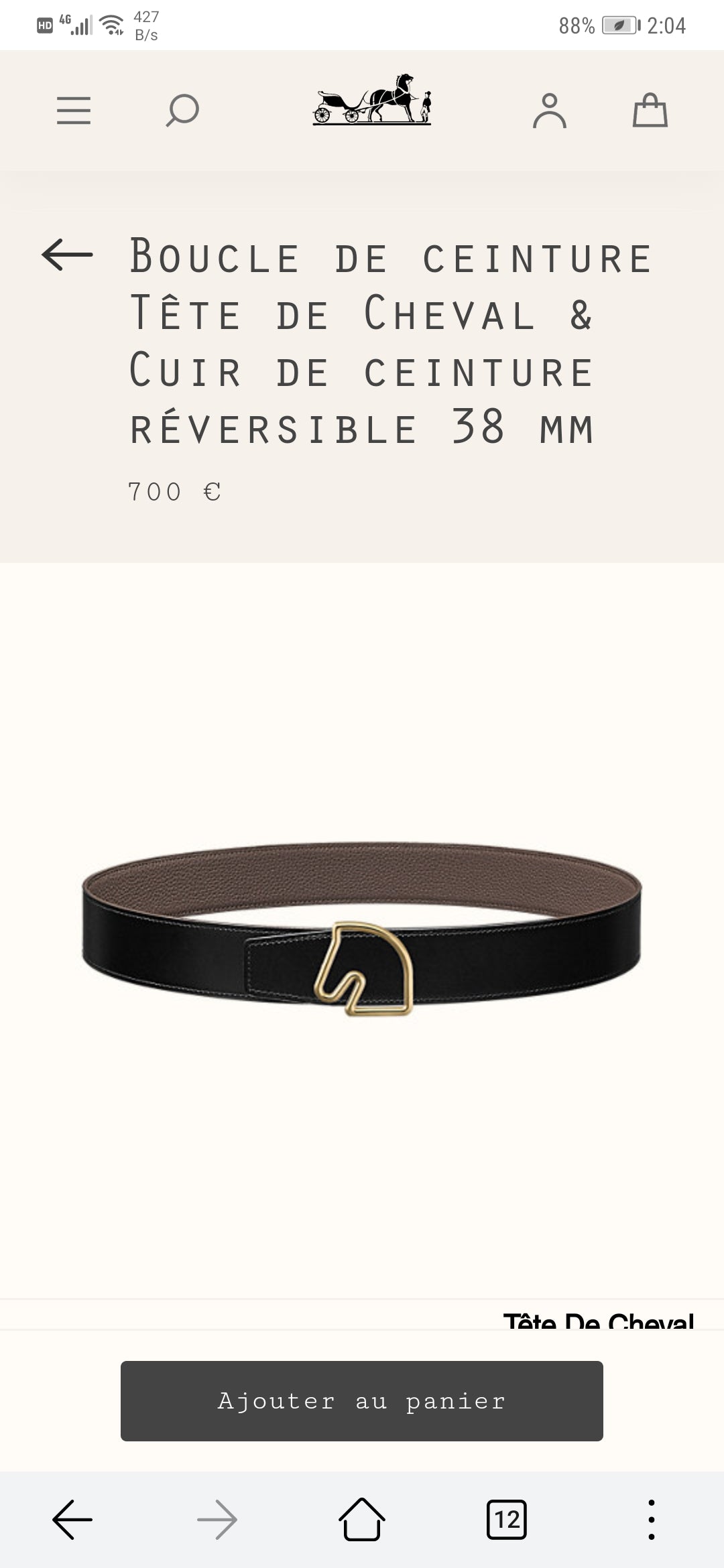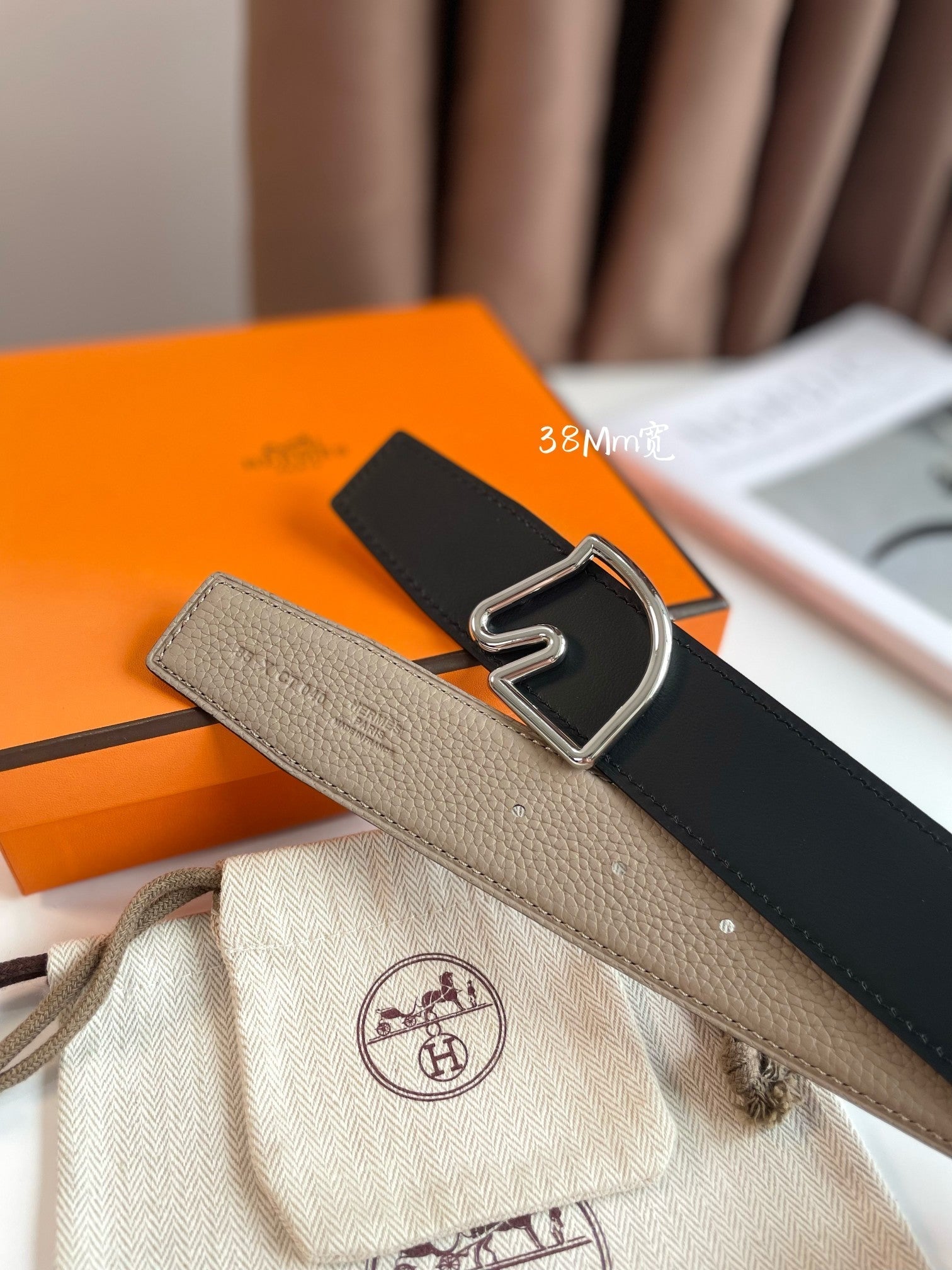 HM ITHAQUE BELT SILVER BUCKLE & REVERSIBLE CAMEL BROWN AND BLACK LEATHER STRAP 38MM