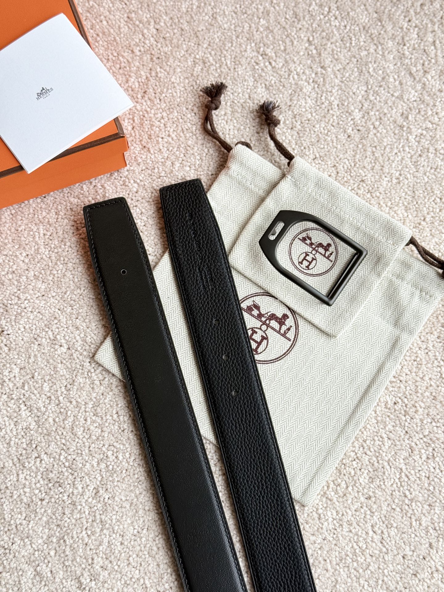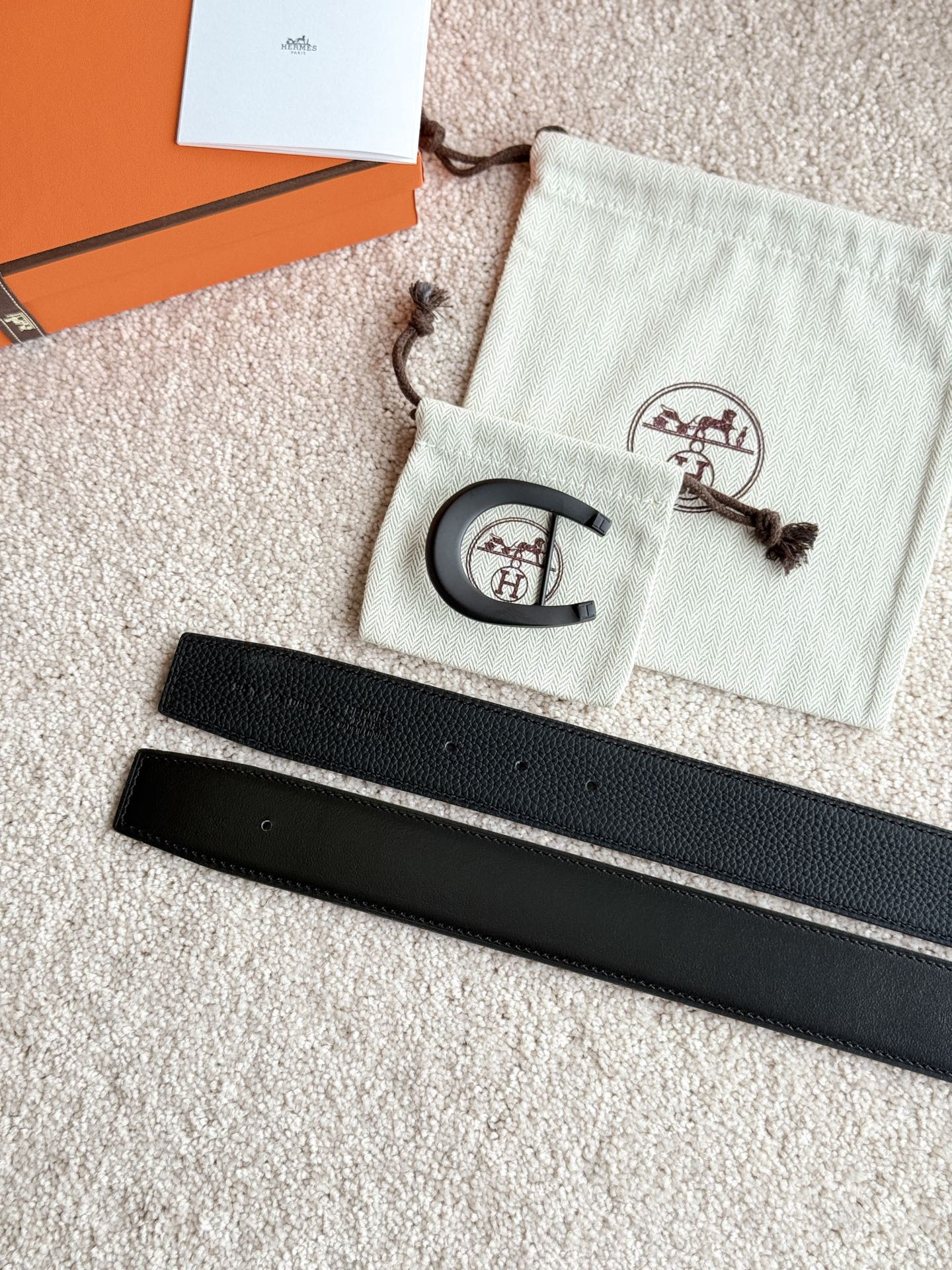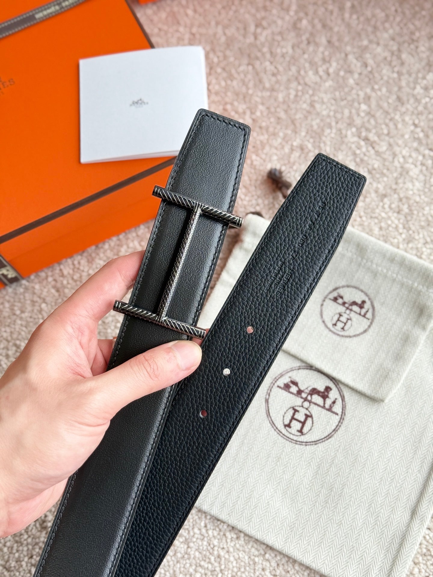 HM H Au Carre Buckle Belt 38mm Black Calfskin 187506