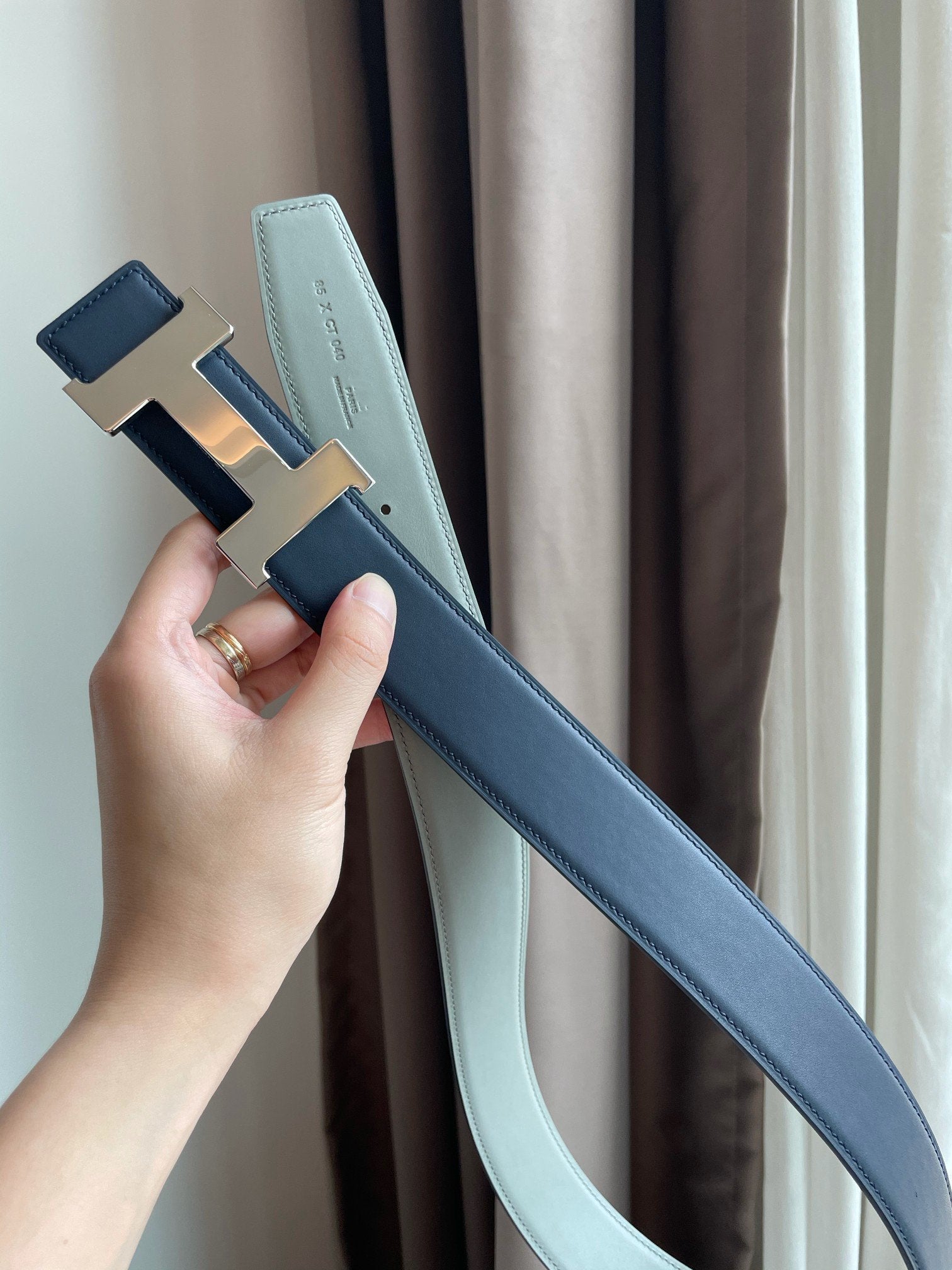 H RIDER RIVERSIBLE BELT 32MM SILVER BUCKLE PRUSSIAN BLUE GOLD LEATHER