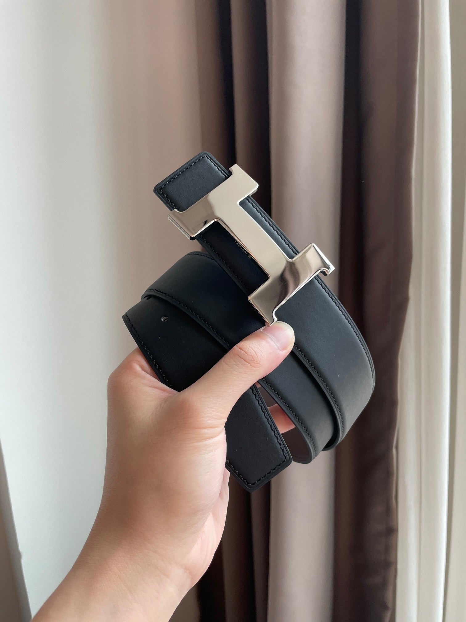 H BELT SILVER BUCKLE 3.5 MM SMOOTH LEATHER