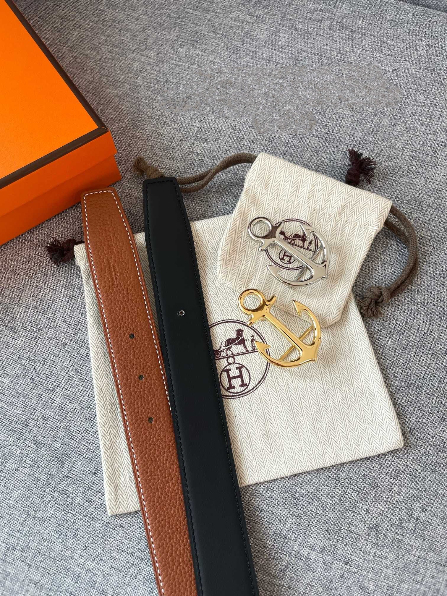 H BELT GOLD BUCKLE 38 MM SMOOTH ORANGE LEATHER REVERSIBLE