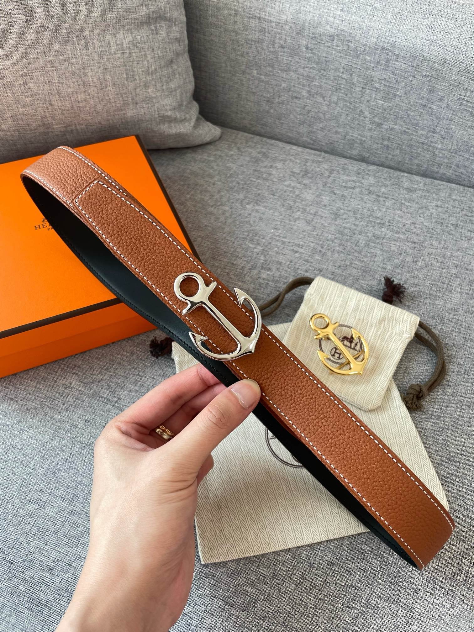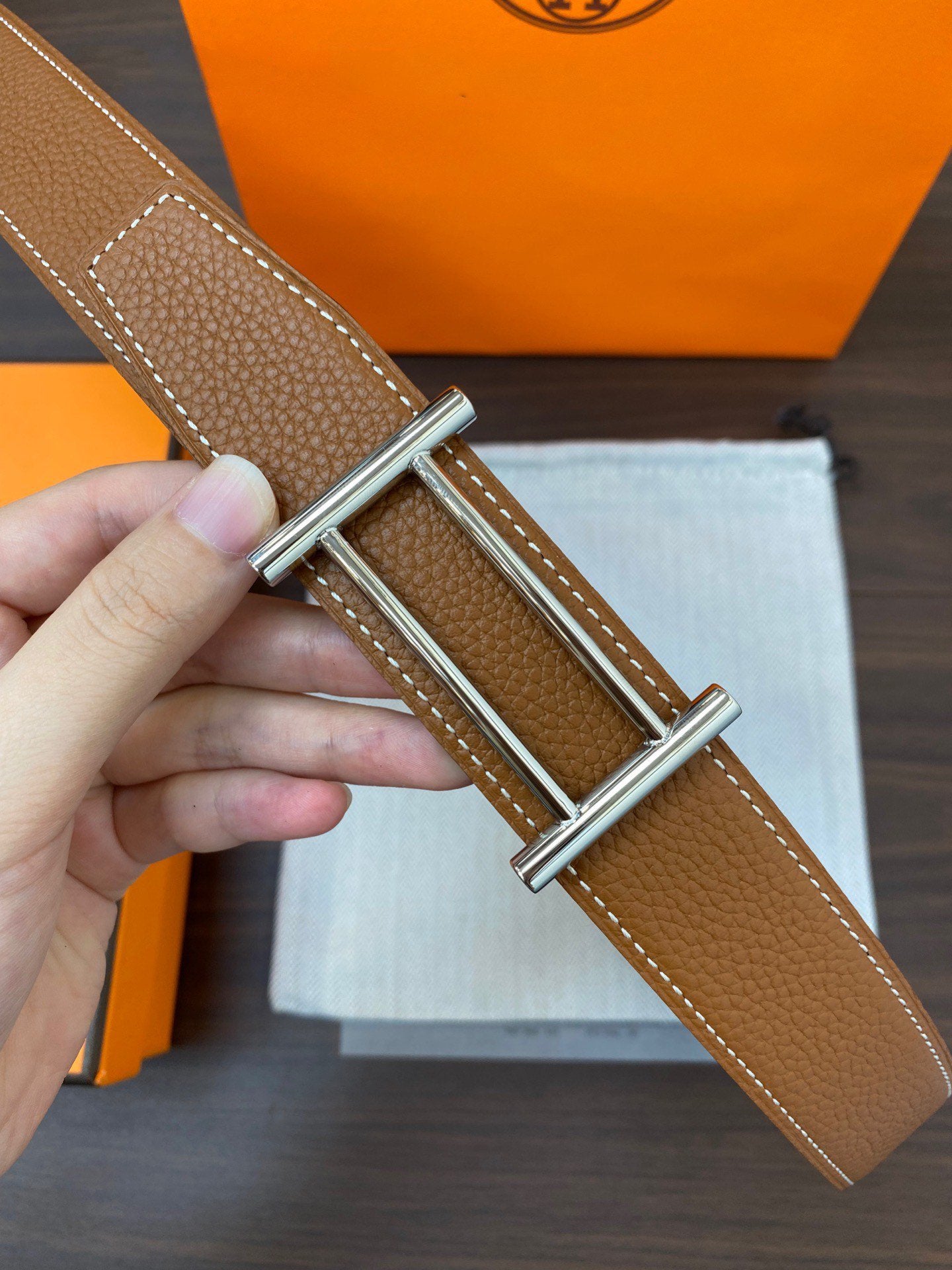 H BELT GOLD BUCKLE 3.5 MM SMOOTH BROWN LEATHER