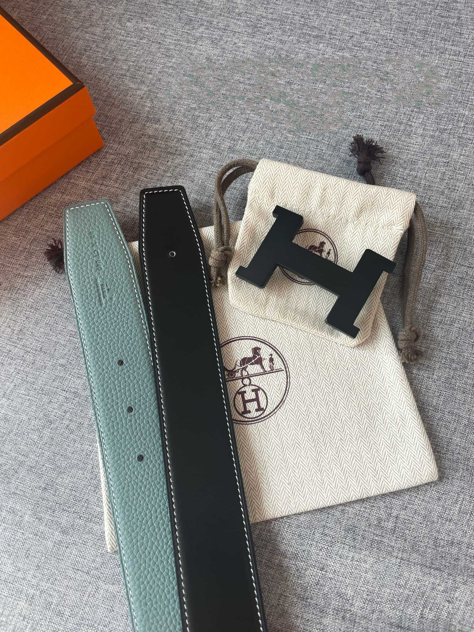 H CONSTANCE REVERSIBLE BELT 38MM BLACK BUCKLE BLACK GREEN LEATHER