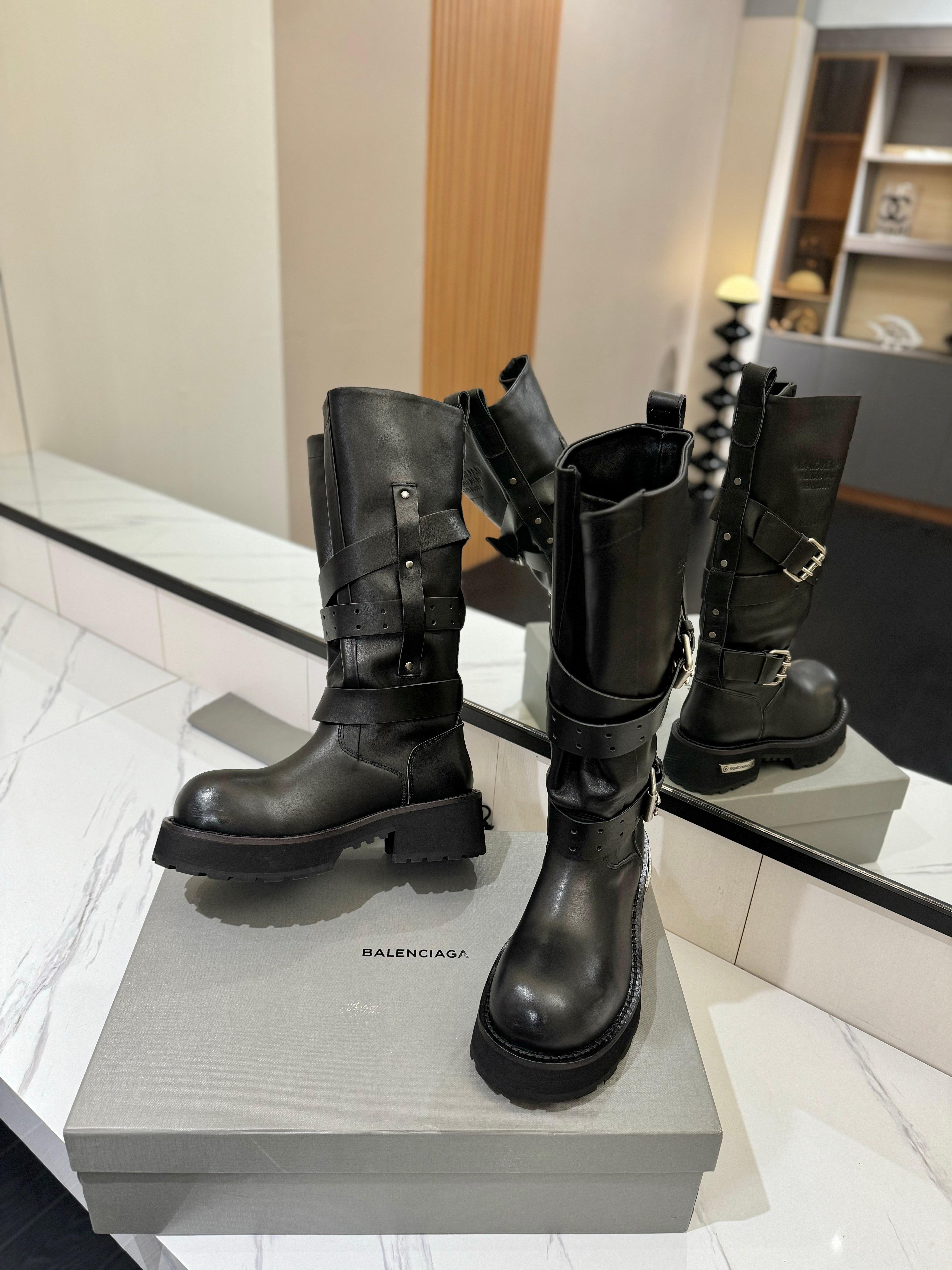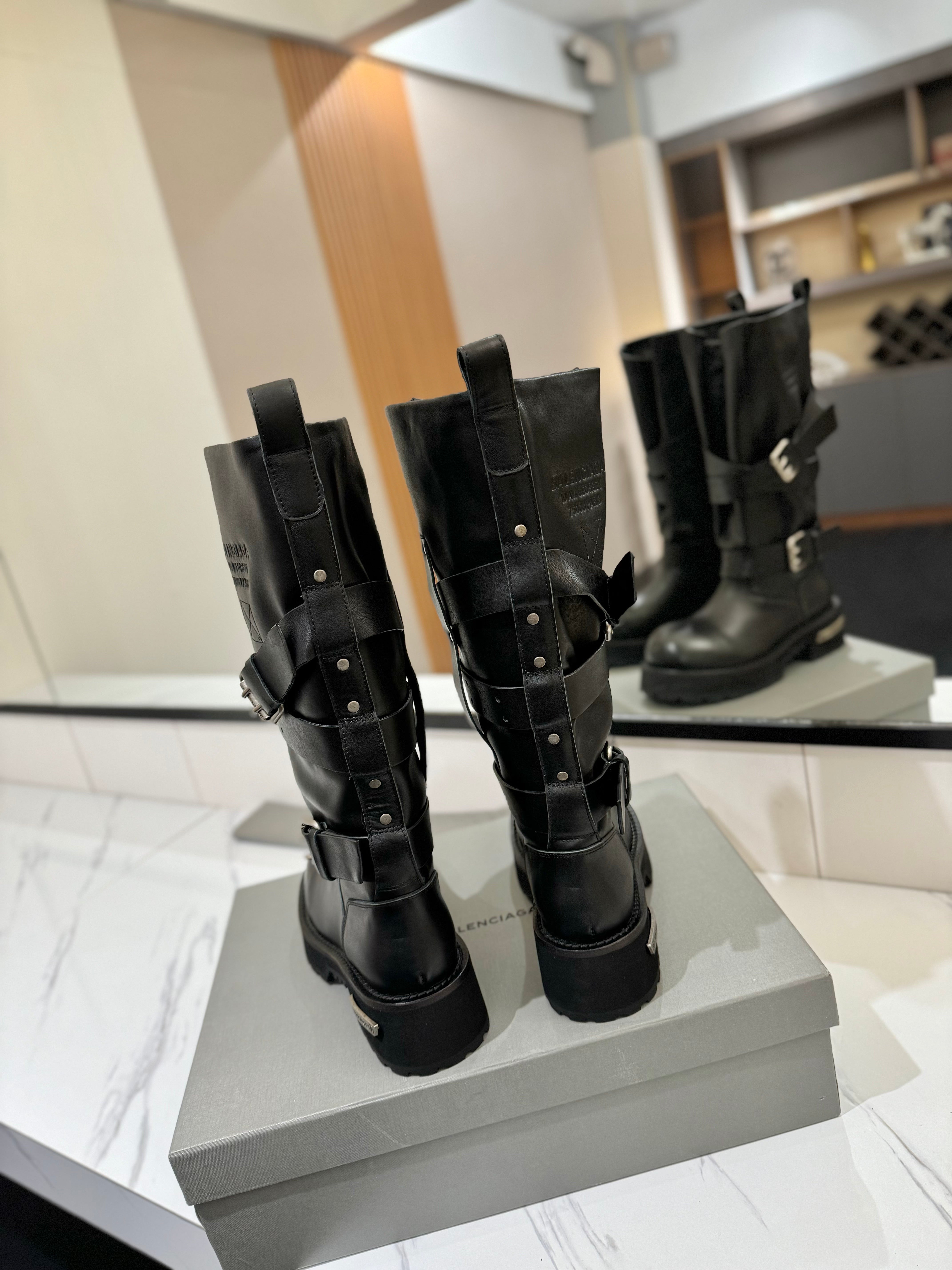 Balenciaga 25s buckled high boots black calfskin 467611