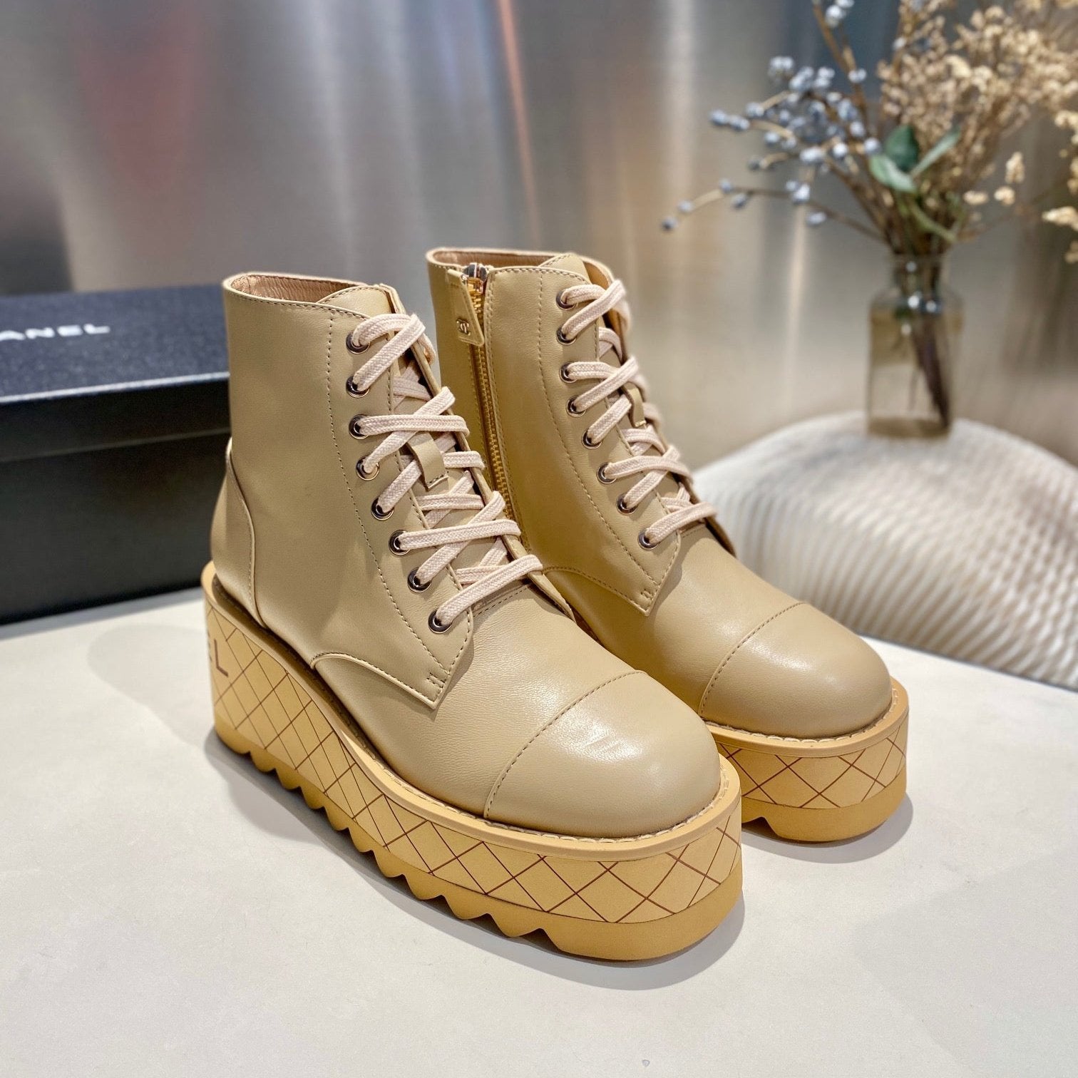 CC Ankle Boots 100m Beige Lambskin