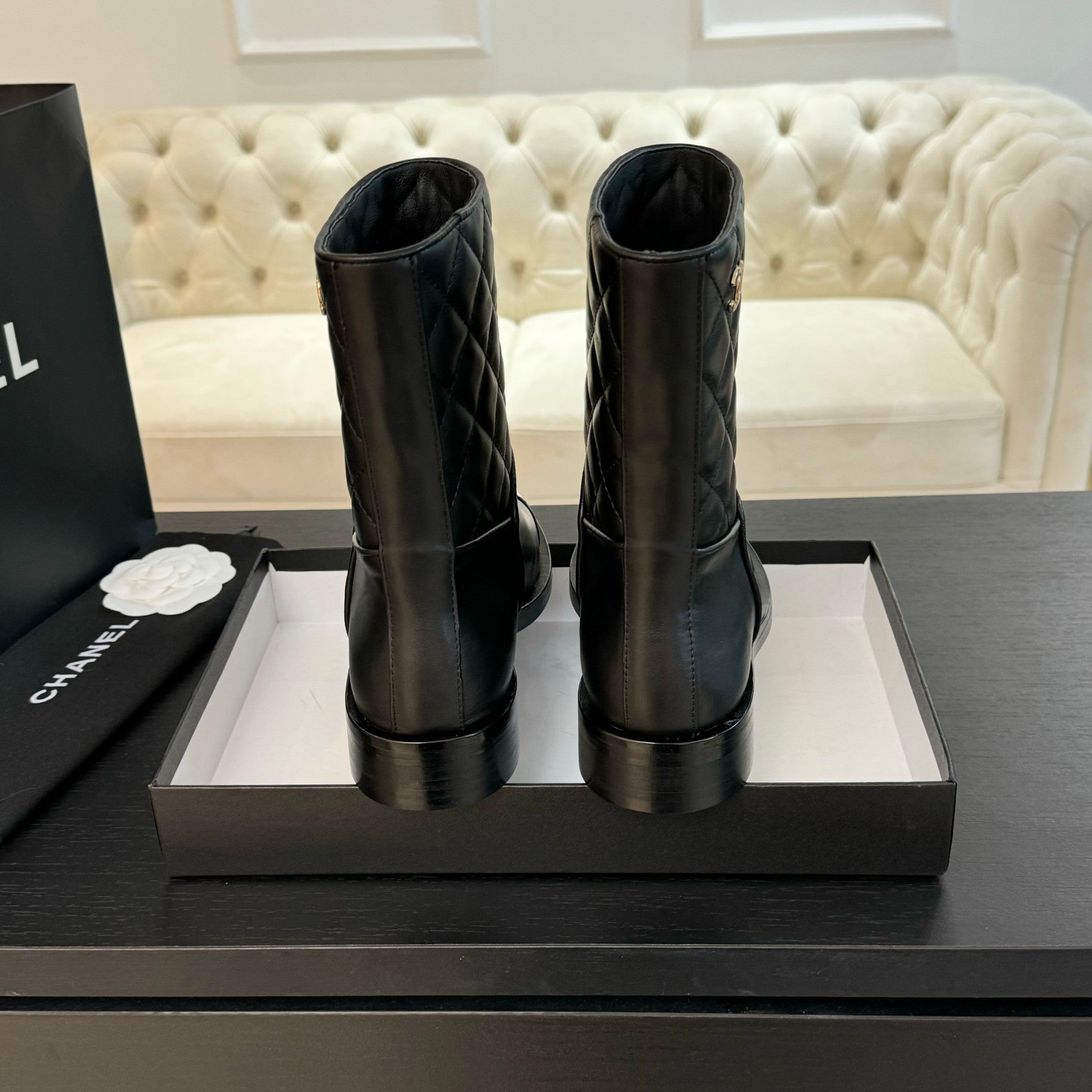 CC Ankle Boots 30mm Black Calfskin Quilted