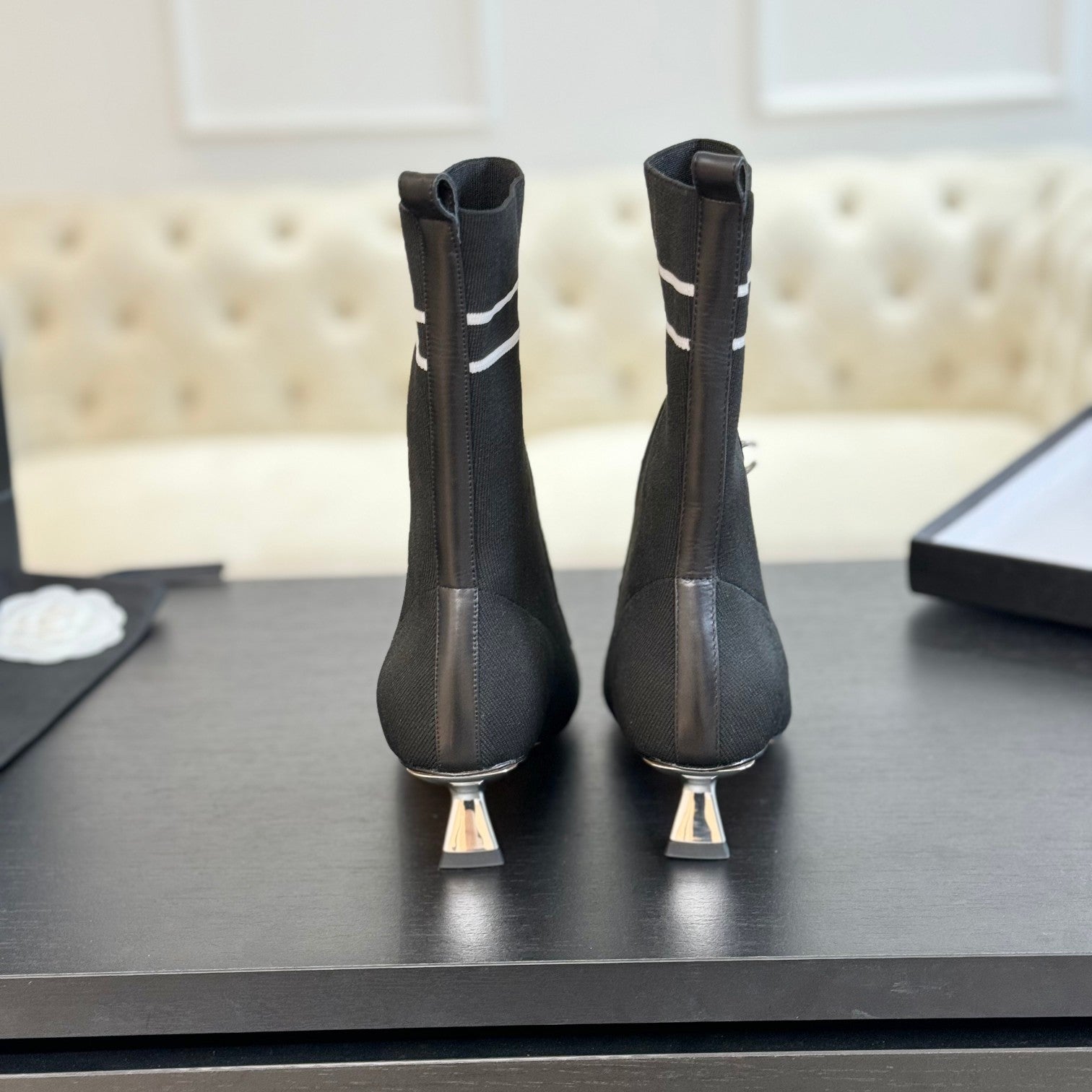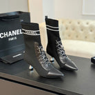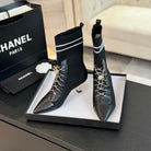 CC Ankle Boots Black Chain Wool And Lambskin