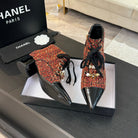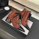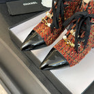 CC Ankle Boots Orange Red Beaded Tweed Fabric And Lambskin