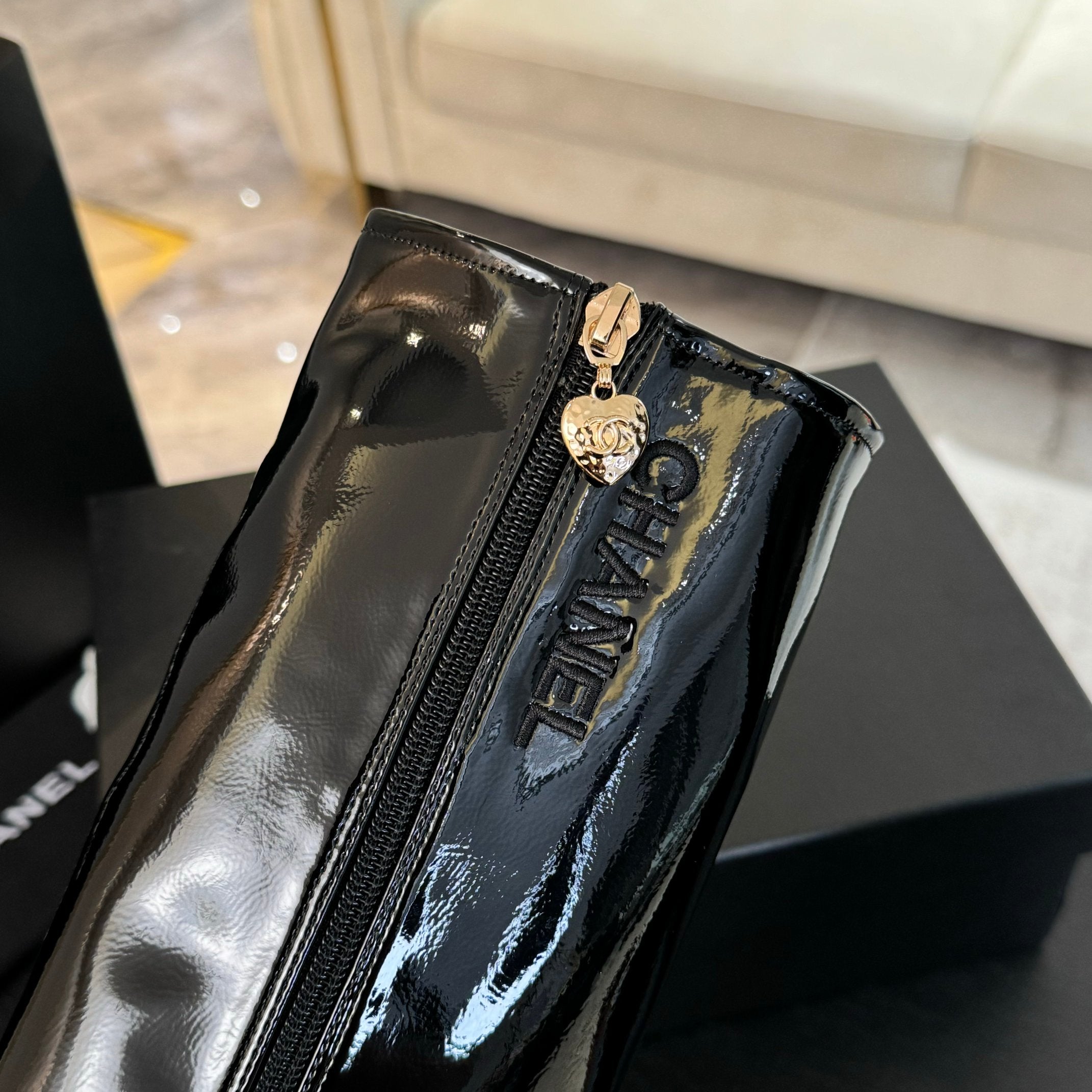 CC High Boots 80mm Glossy Black Cowhide