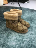 GG Horsebit Snow Boots Dark Beige Woolen Fabric Fleece 576252