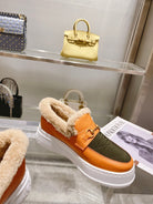 GG Snow Boots Orange Olive Cowhide Wool 576233