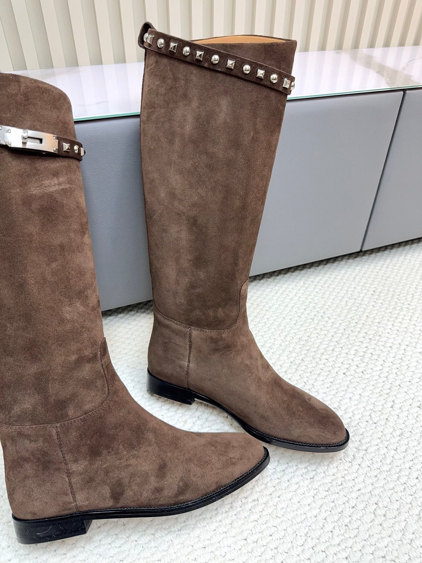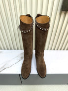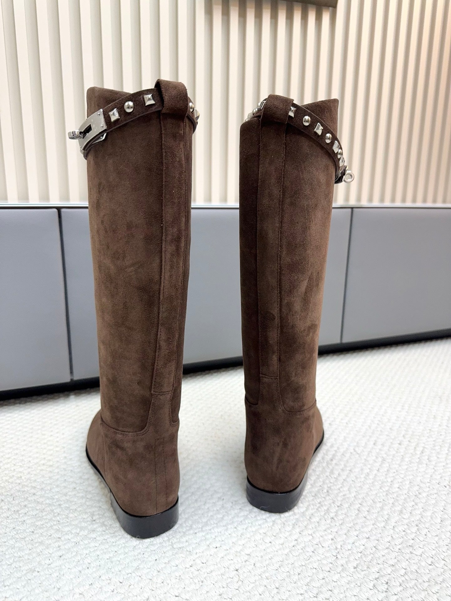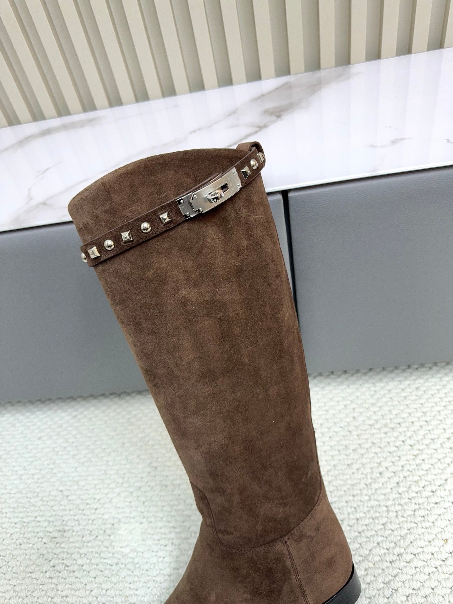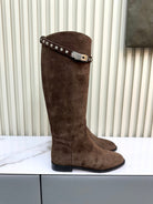 HM 25ss Kelly Buckle Riding Boots Dark Brown Suede 576118