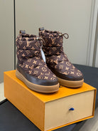 LV 25 Snow Boots Brown Leather Canvas 576938