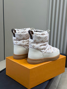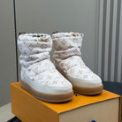 LV 25 Snow Boots White Leather Canvas 576939