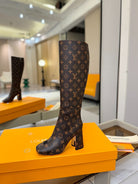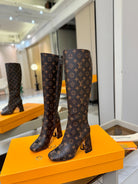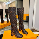 LV High Boots 85 Monogram Brown Sheepskin 573736
