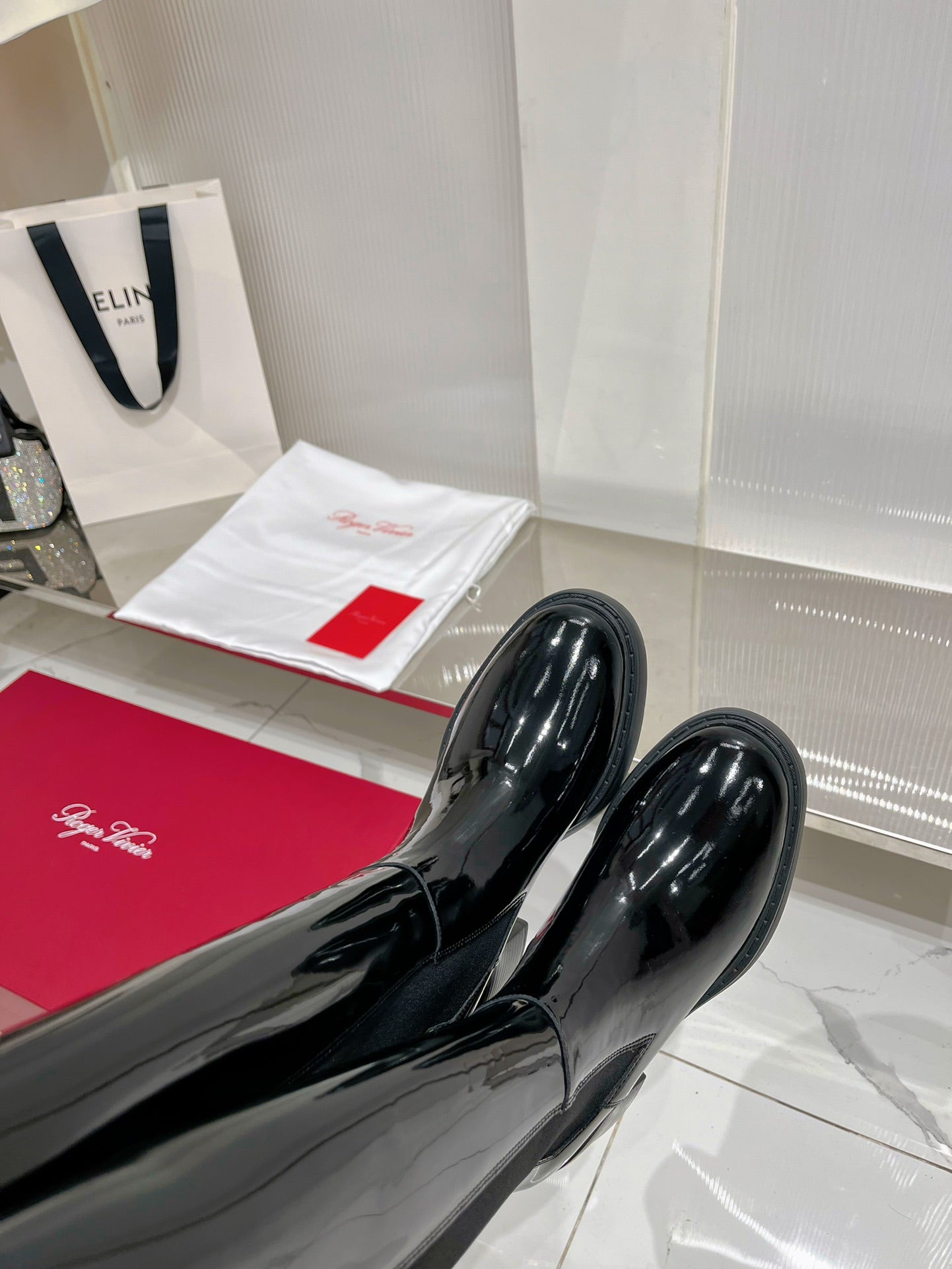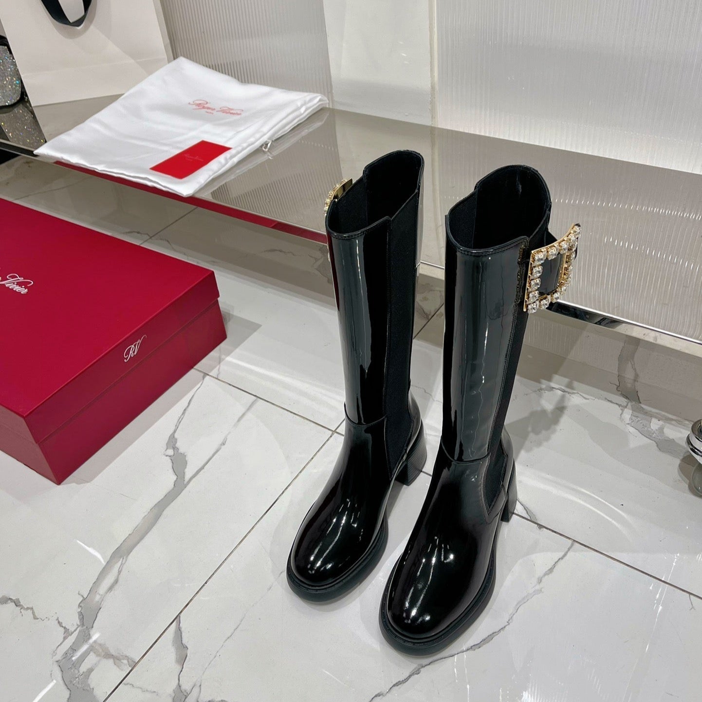 Viv Diamond High Boots Black Cowhide Patent Leather 365205