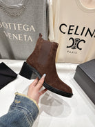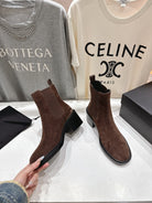YSL 2025 Short Boot Dark Brown Suede 567582