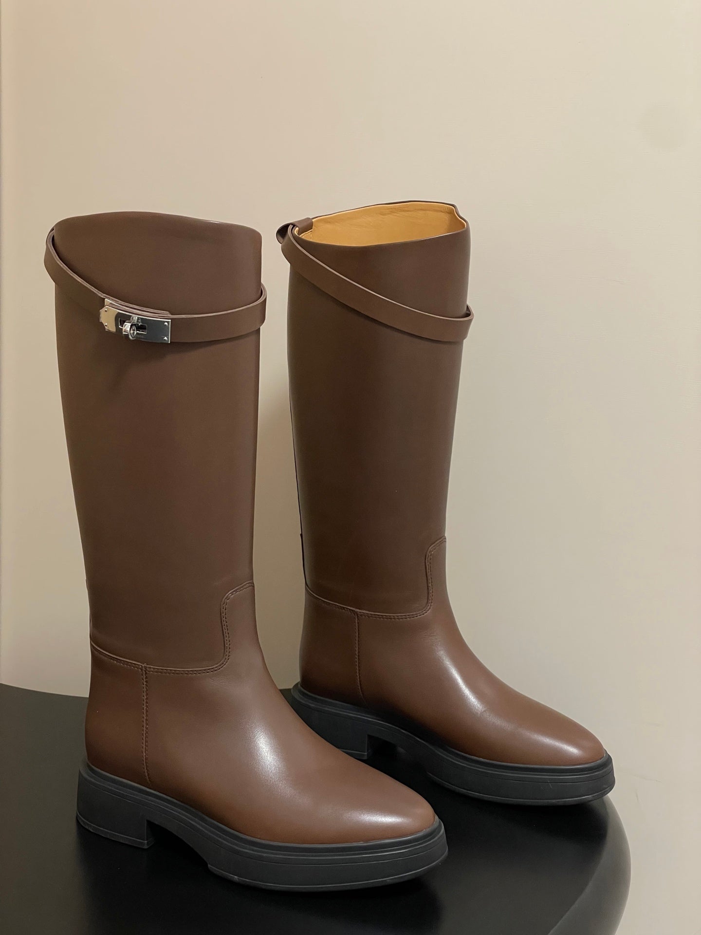 HM Jumping Boots Dark Brown Kelly Buckle Cowhide Leather
