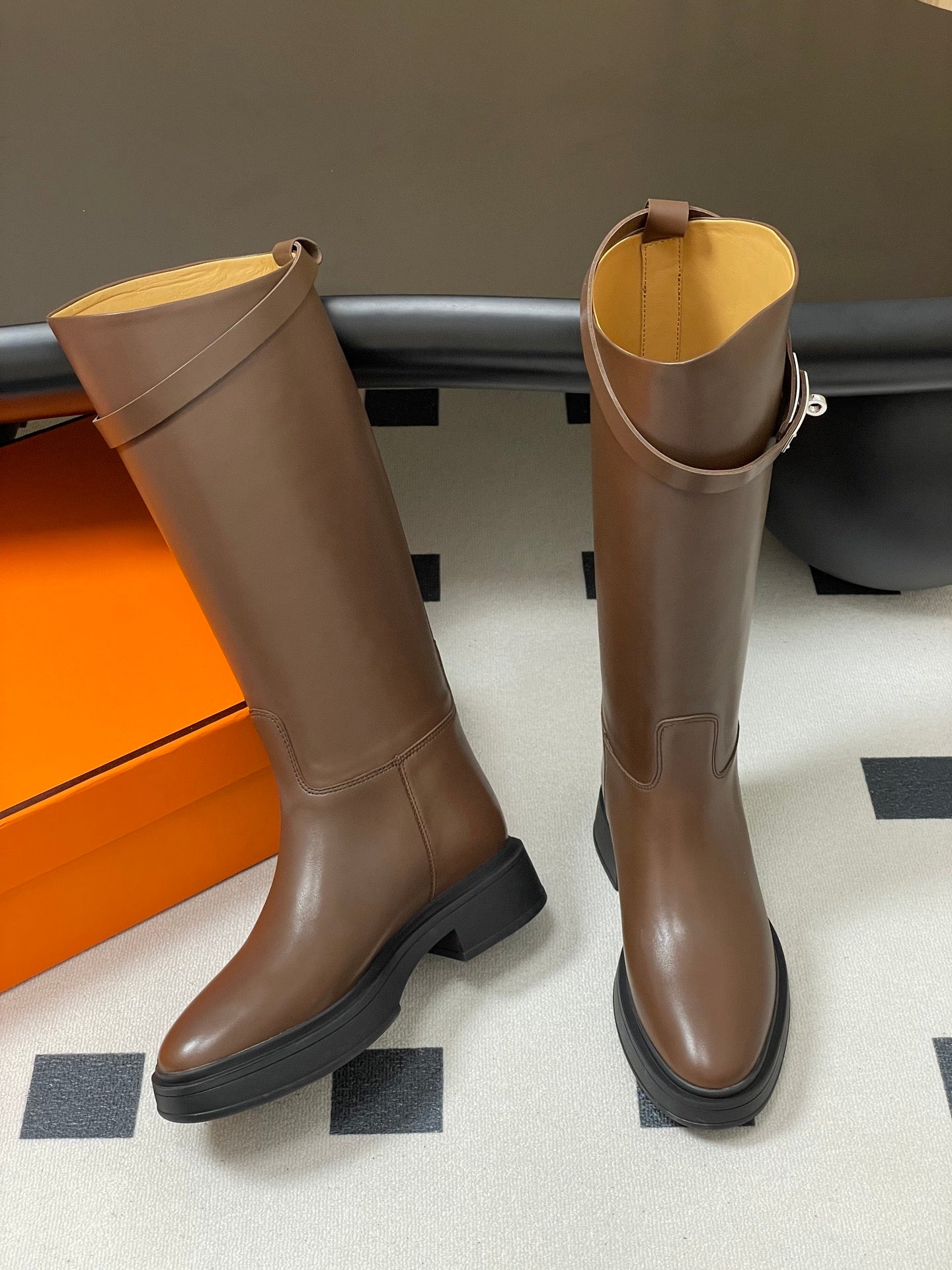 HM Jumping Boots Caramel Brown Kelly Buckle Calfskin 423263