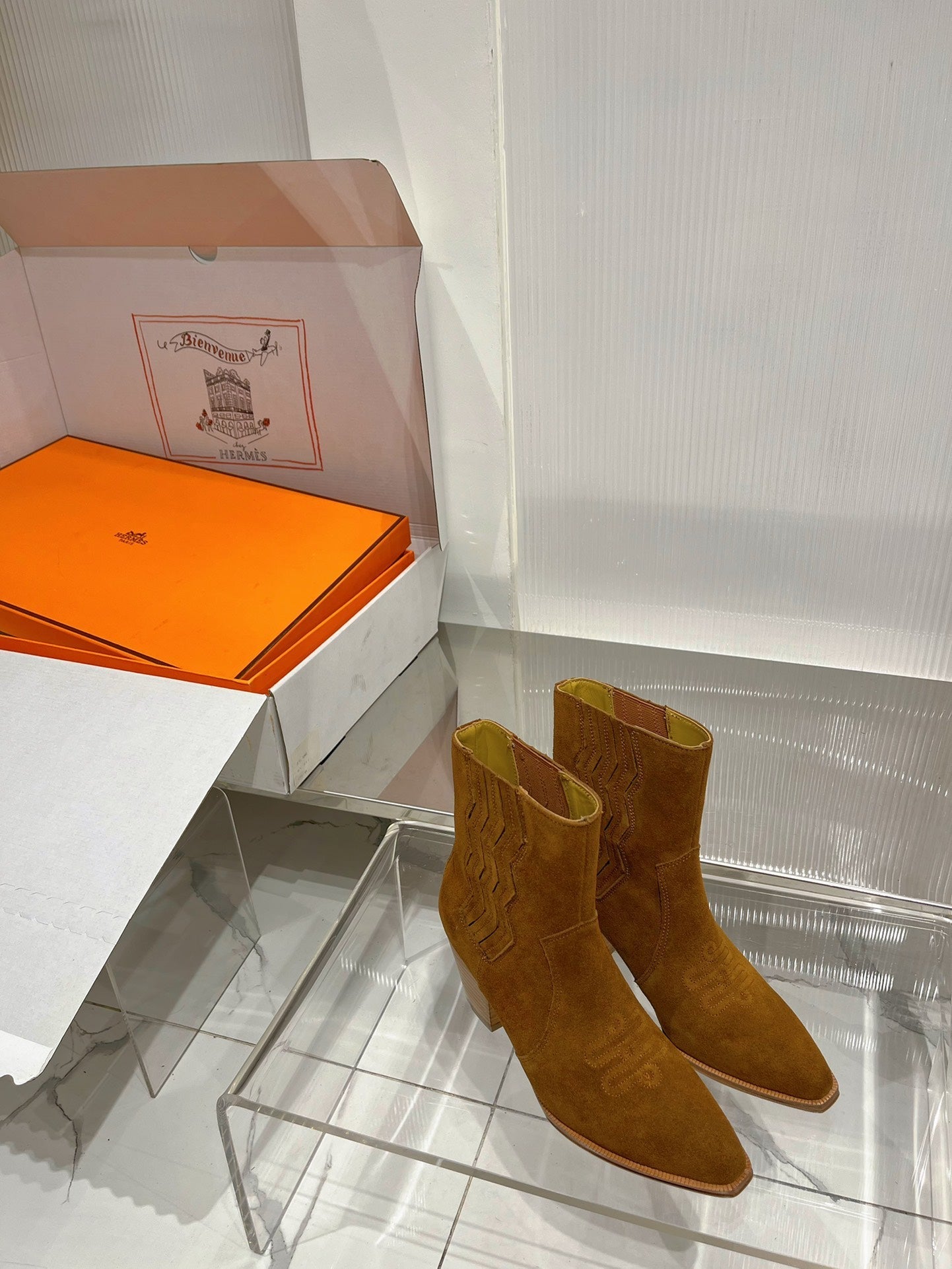 HM High Boots 60mm Brown Orange Calfskin And Suede 972384