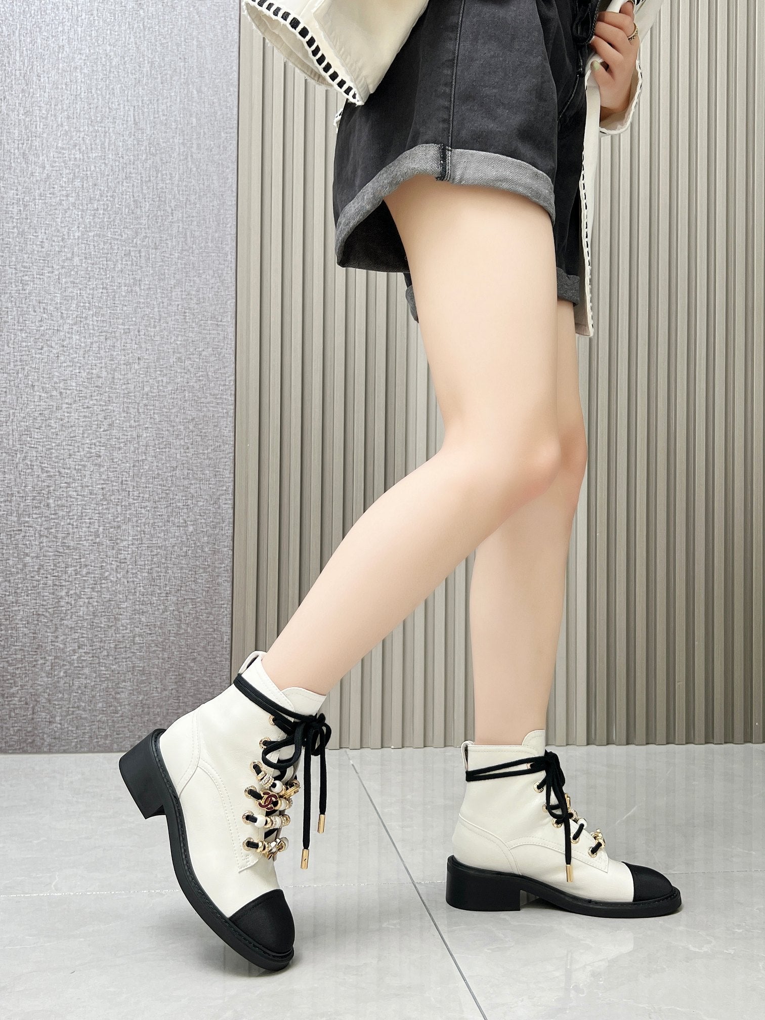 CC Combat Boots 50mm White Black Calfskin And Lycra Fabric 944550
