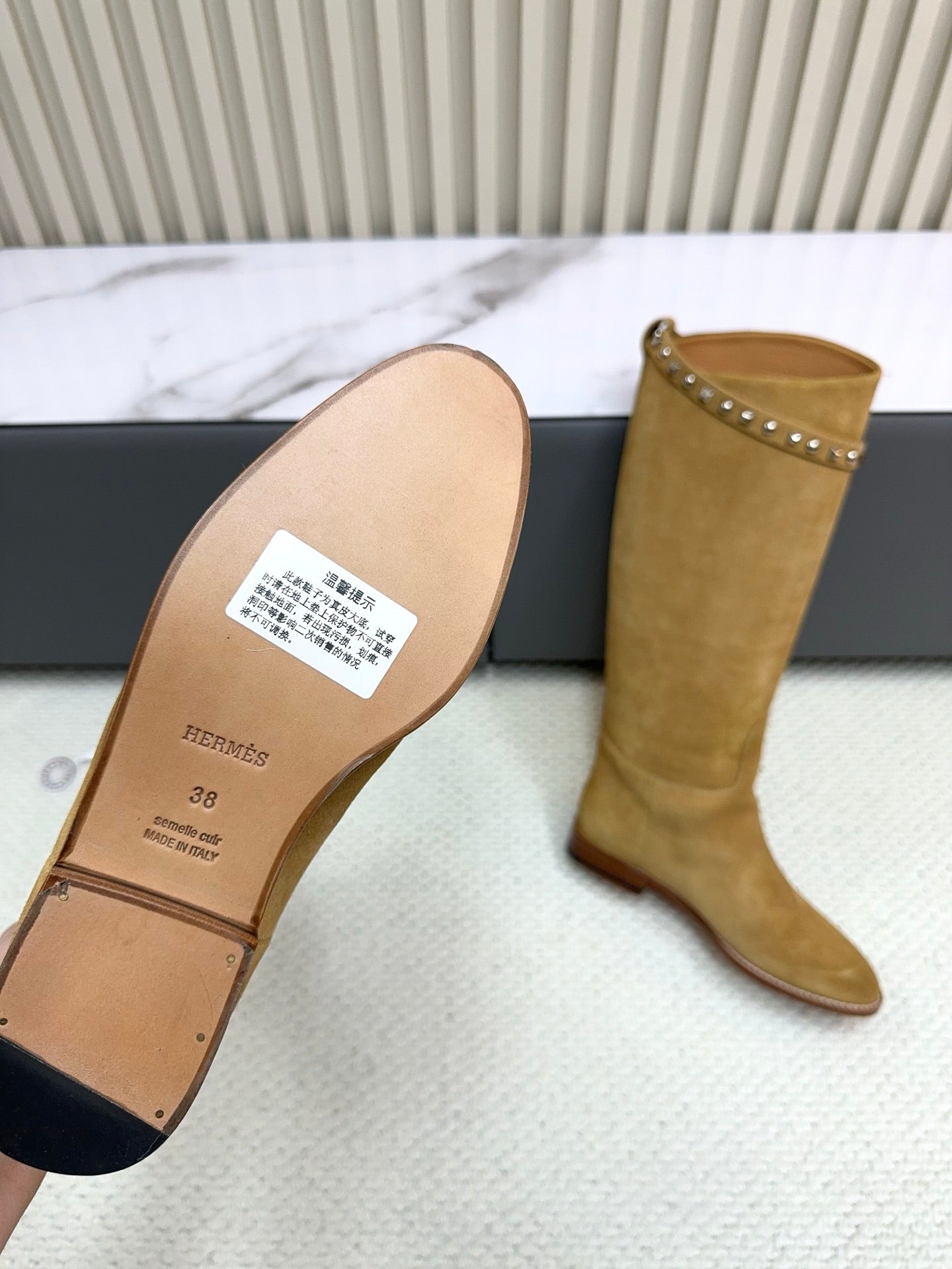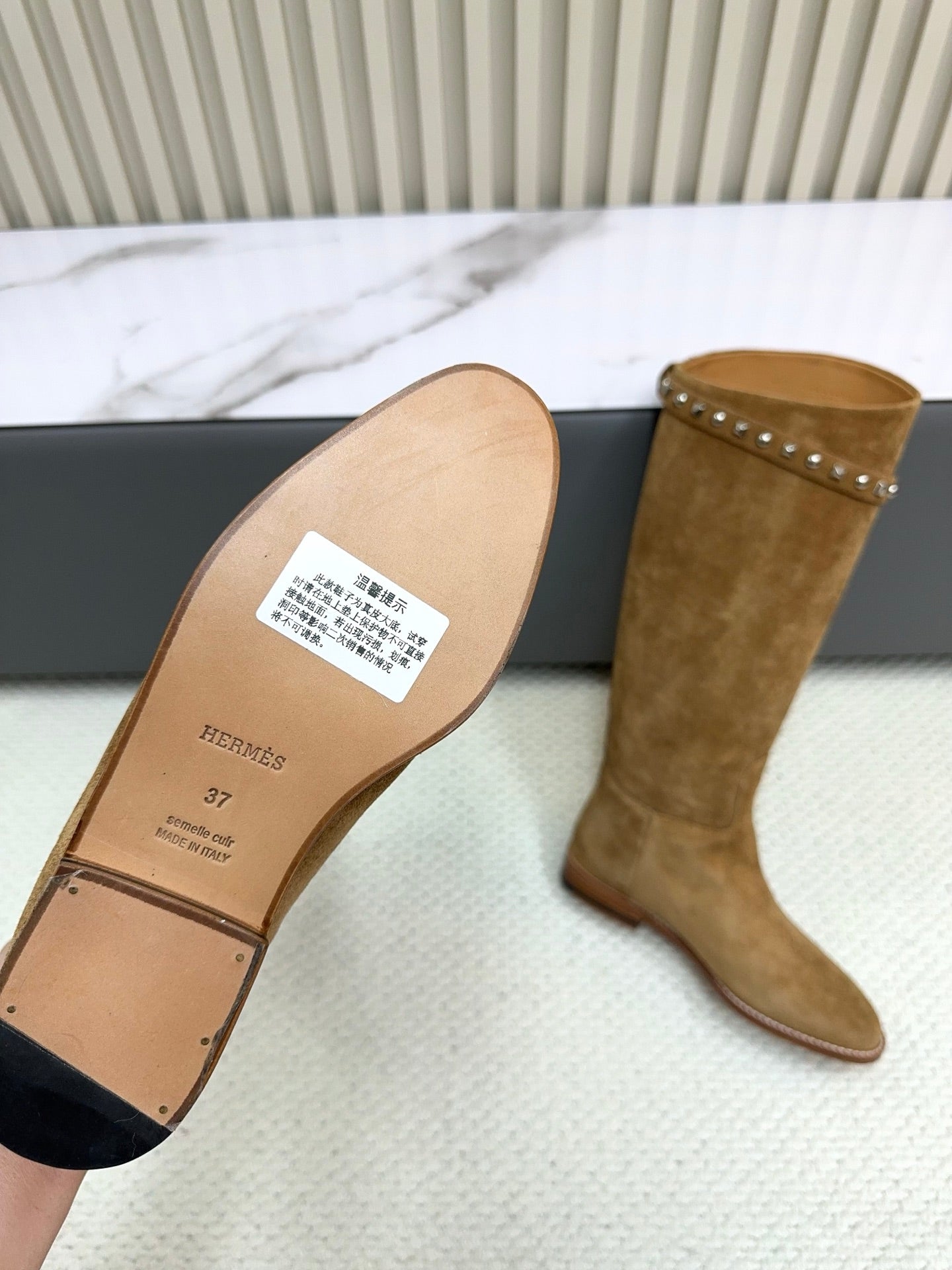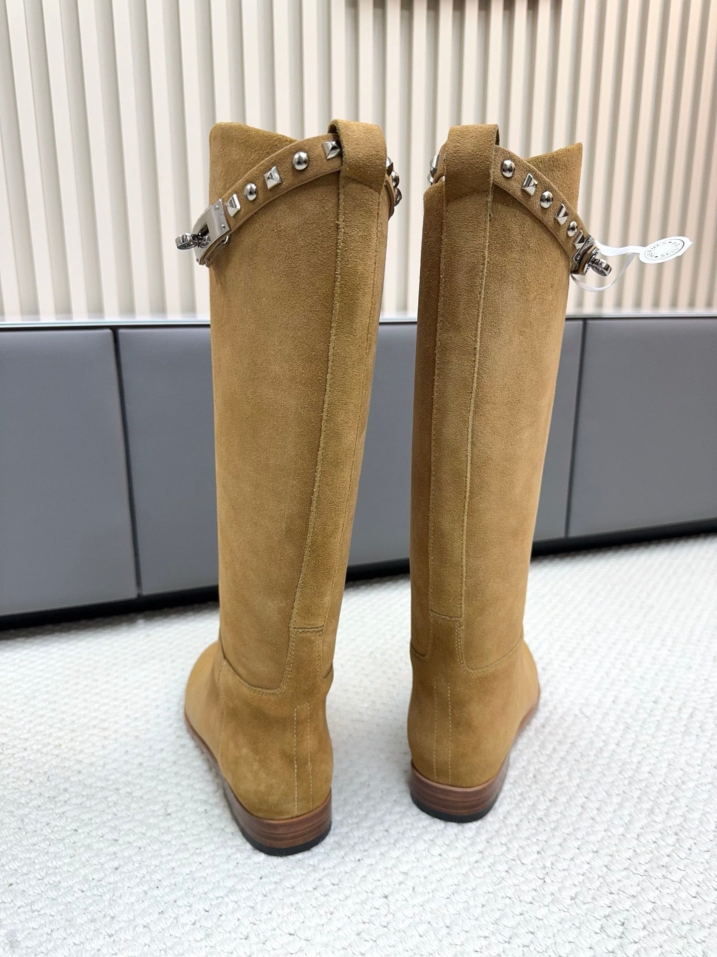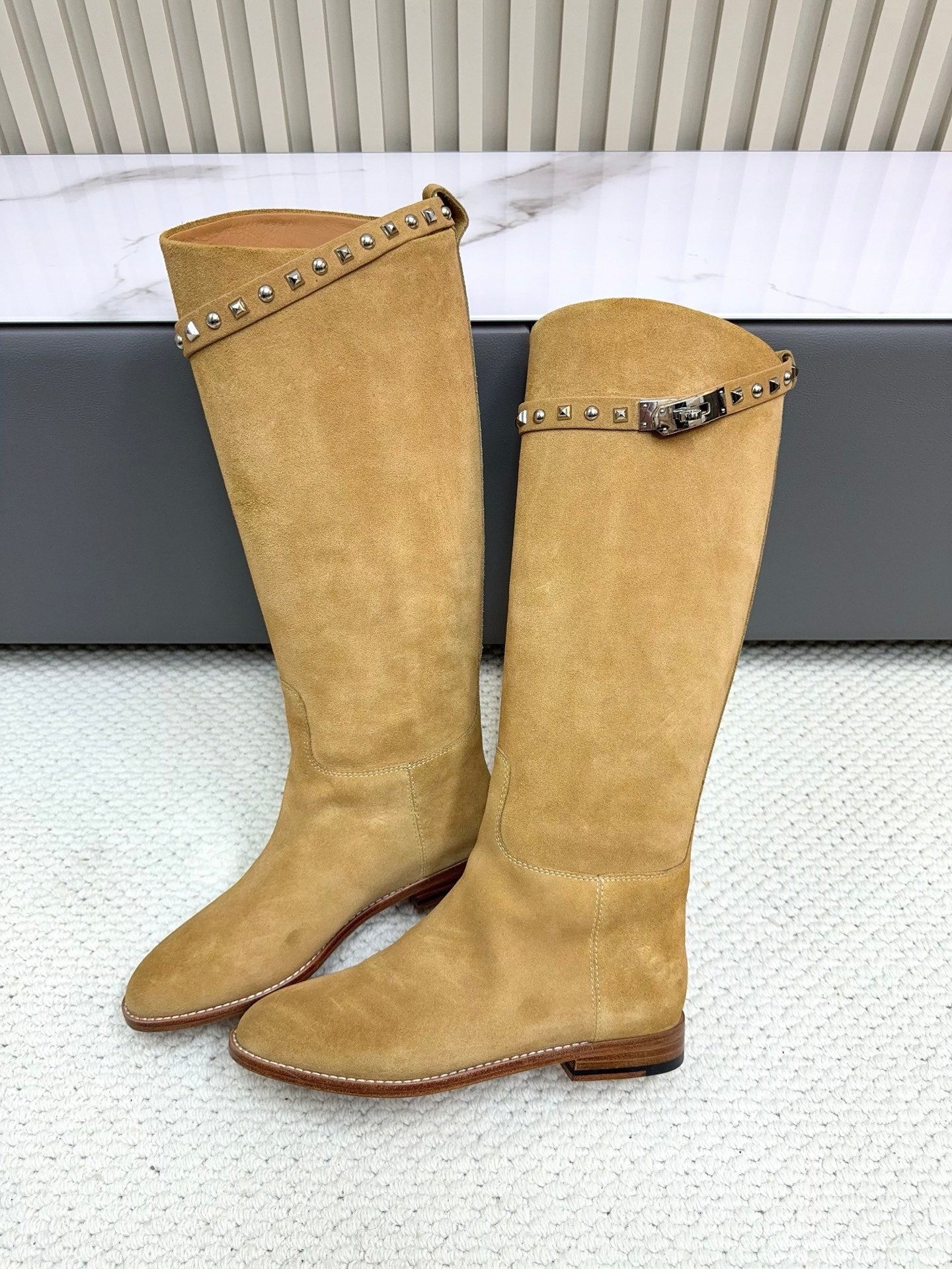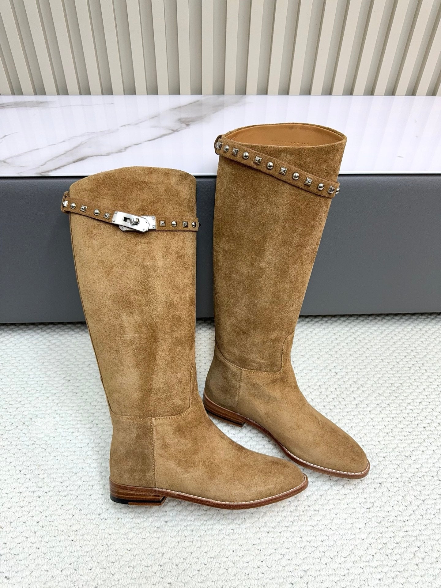 HM 25ss Kelly Buckle Riding Boots Taupe Suede 576119