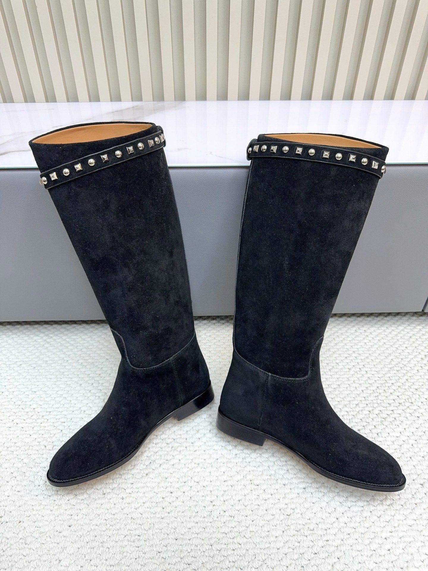 HM 25ss Kelly Buckle Riding Boots Black Suede 576117