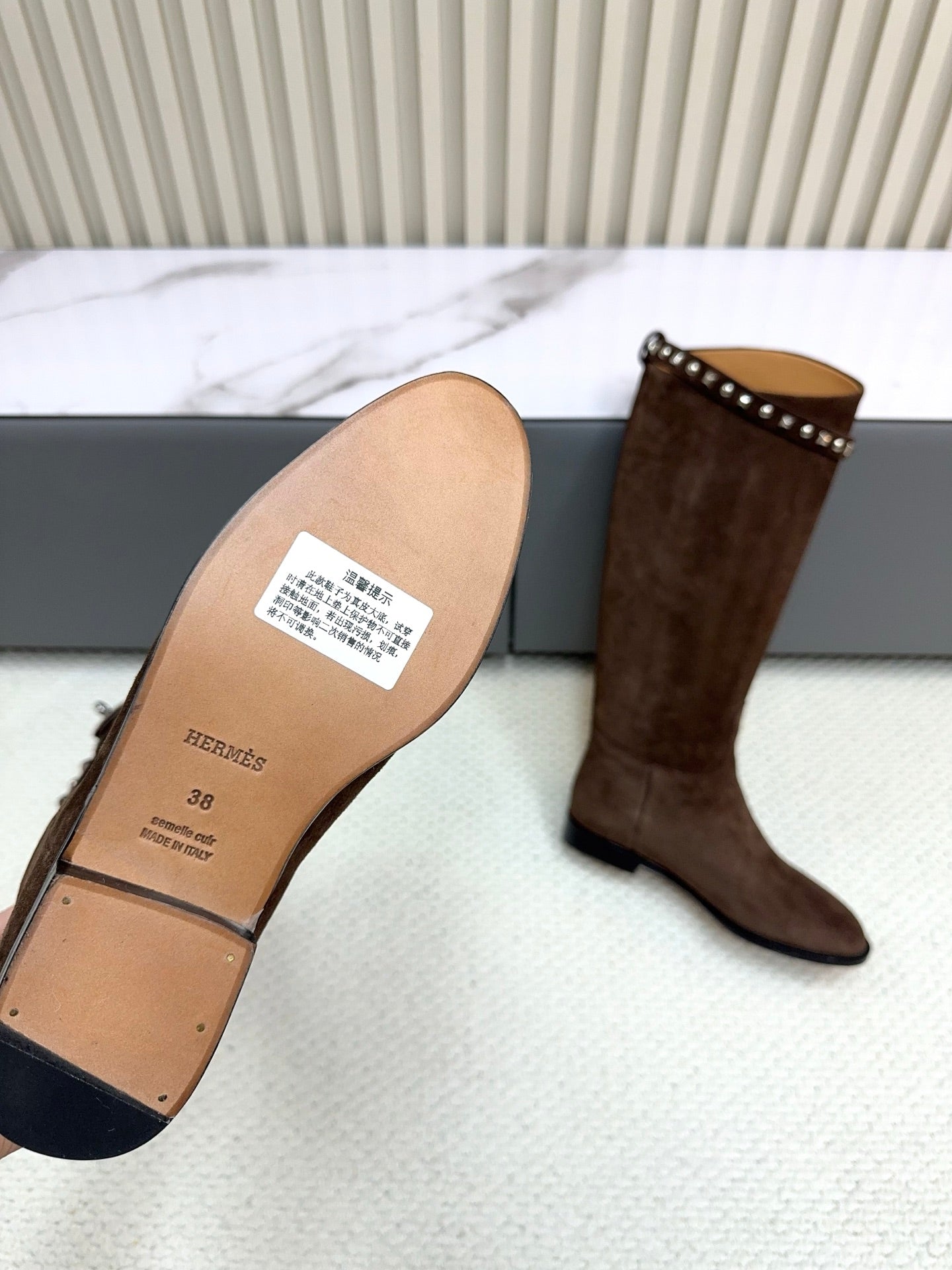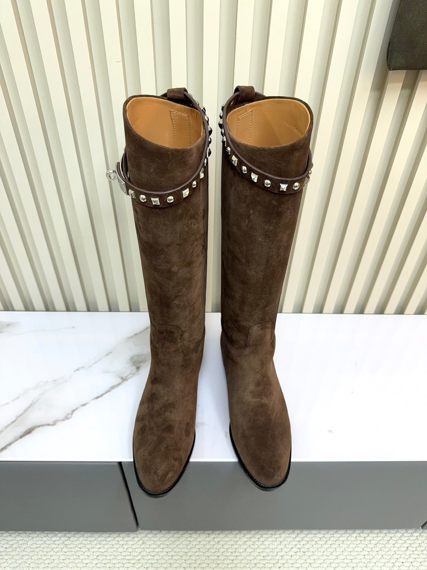 HM 25ss Kelly Buckle Riding Boots Brown Suede 576116