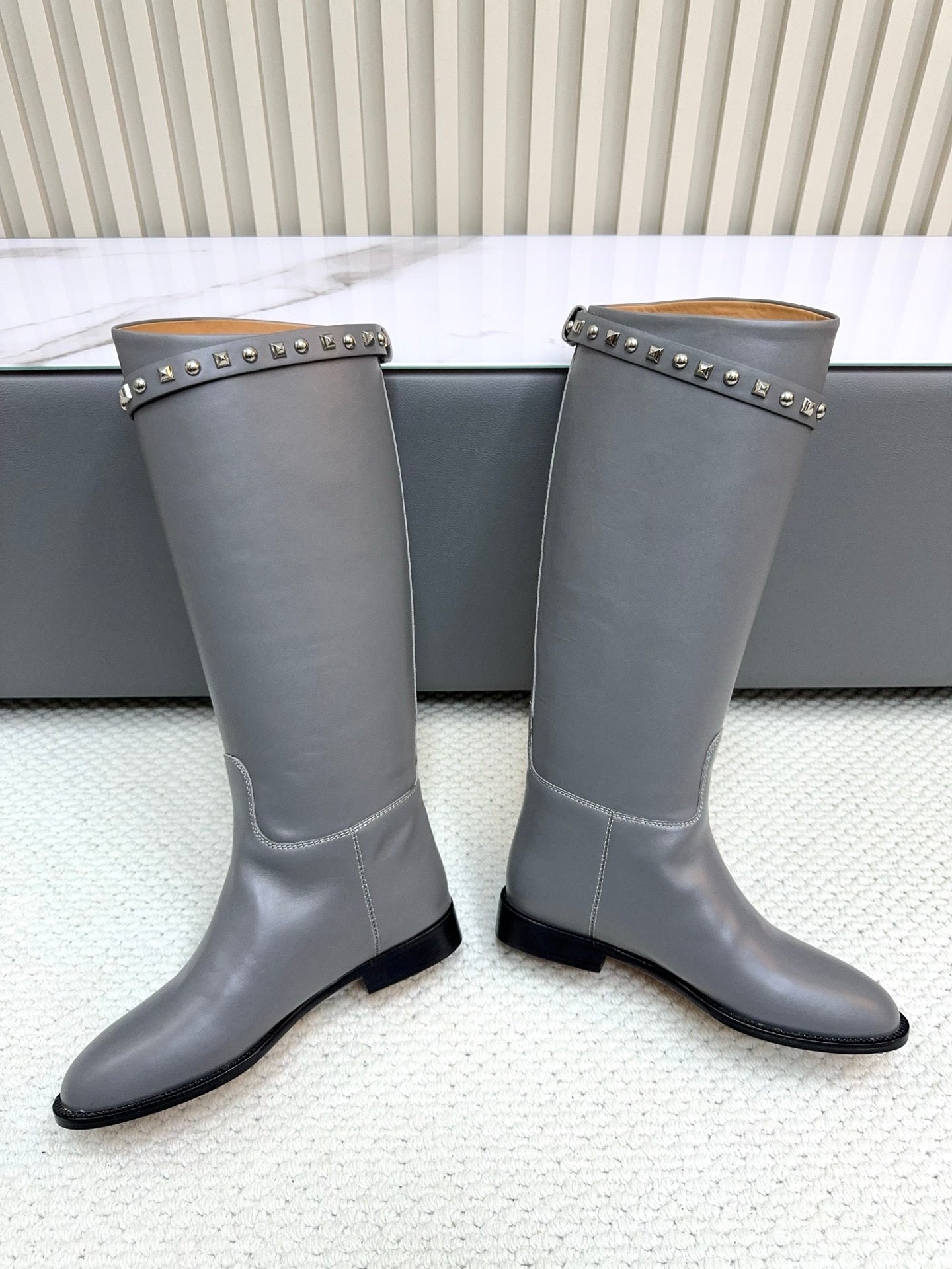 HM 25ss Kelly Buckle Riding Boots Gray Cowhide 576120