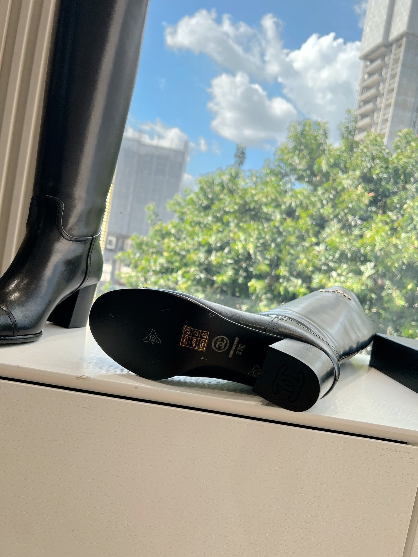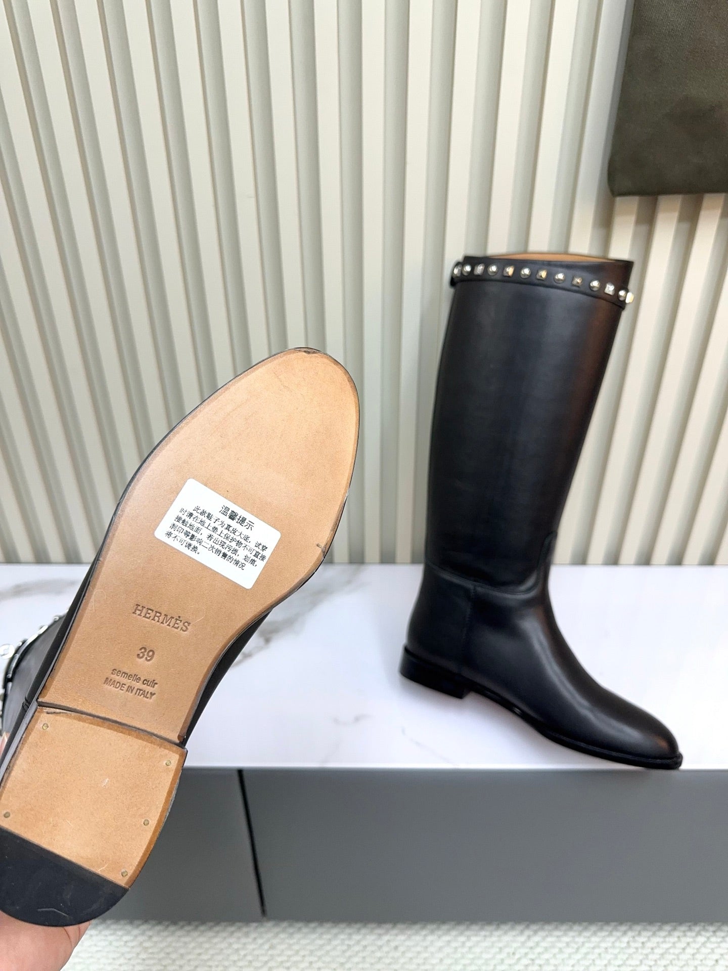 HM 25ss Kelly Buckle Riding Boots Black Cowhide 576121