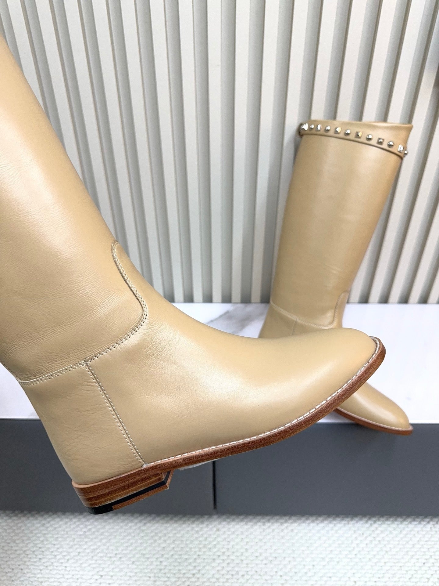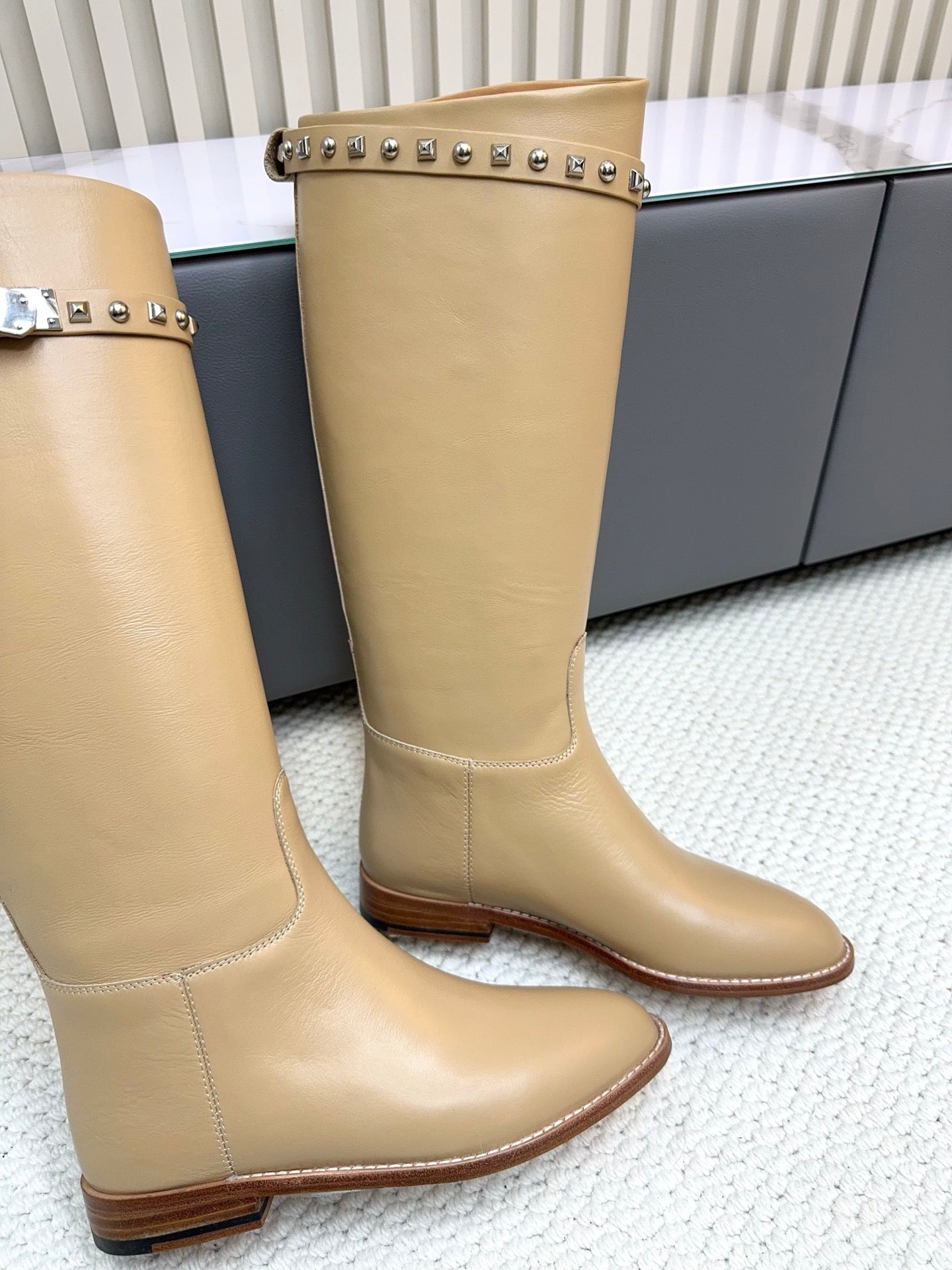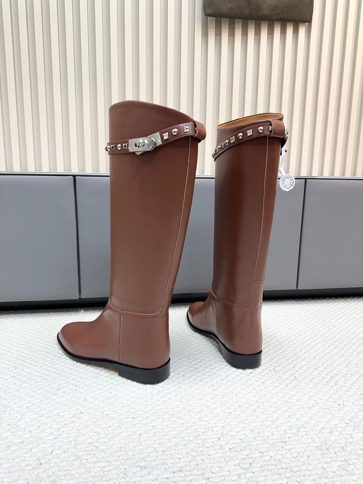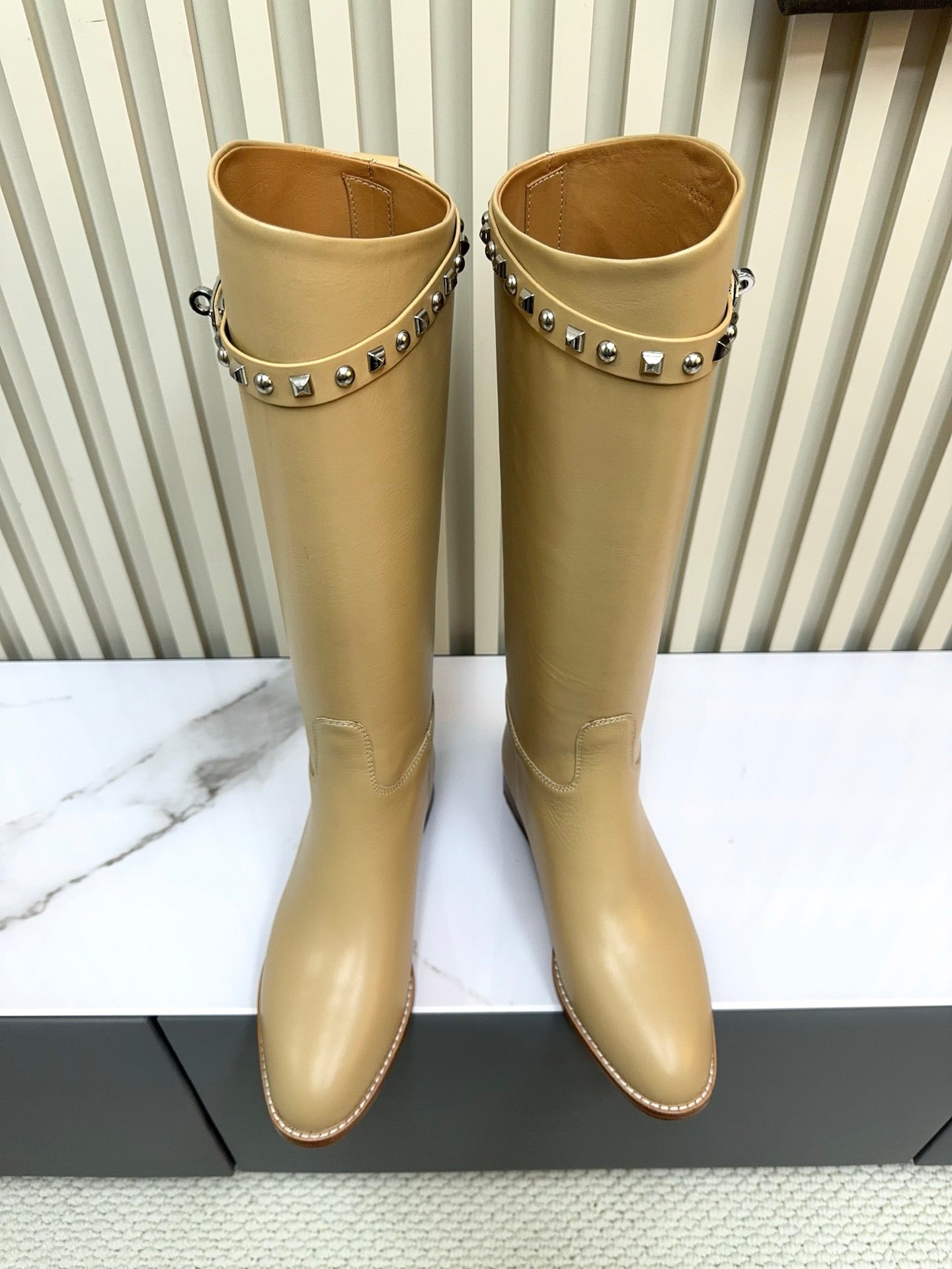 HM 25ss Kelly Buckle Riding Boots Dark Beige Cowhide 576122
