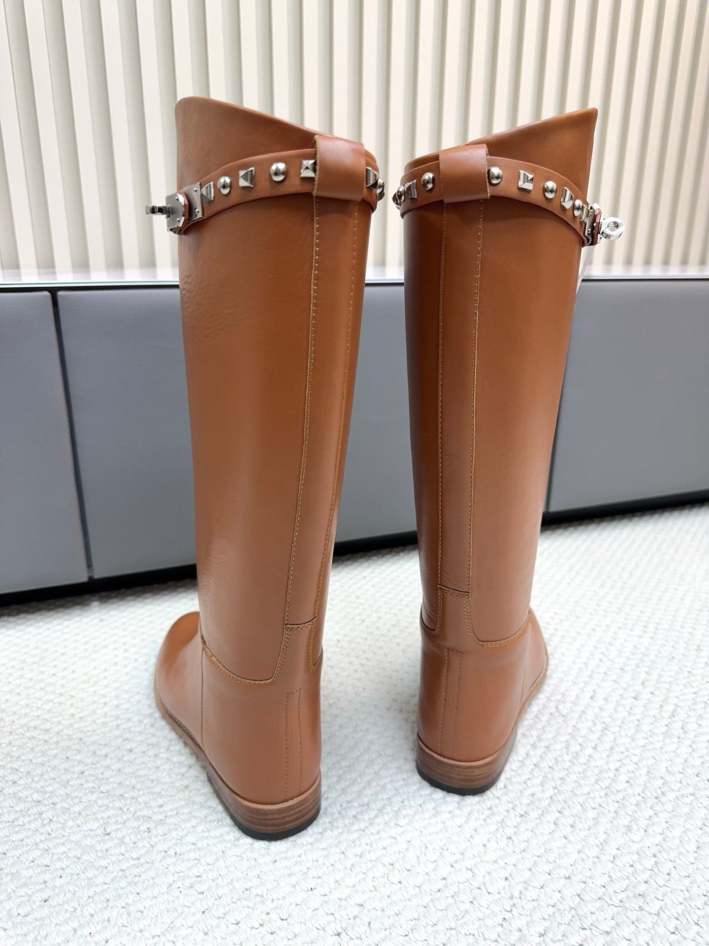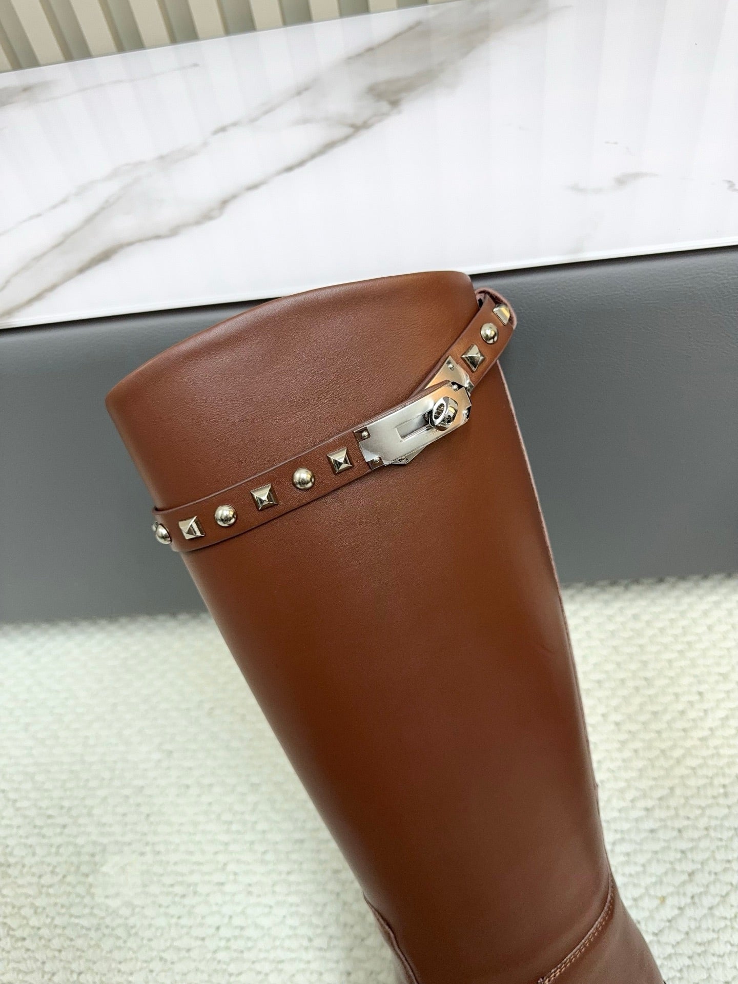 HM 25ss Kelly Buckle Riding Boots Camel Brown Cowhide 576123